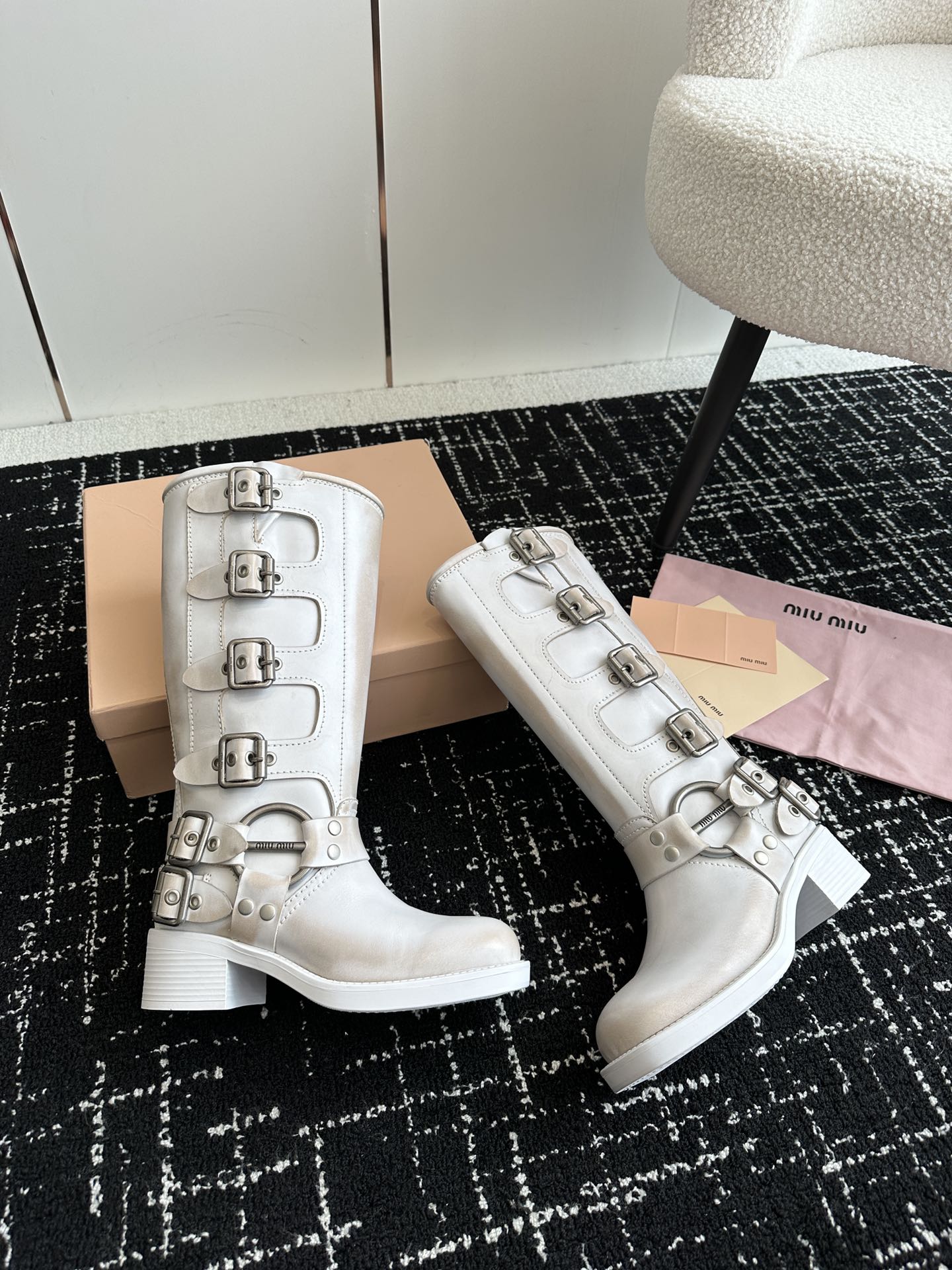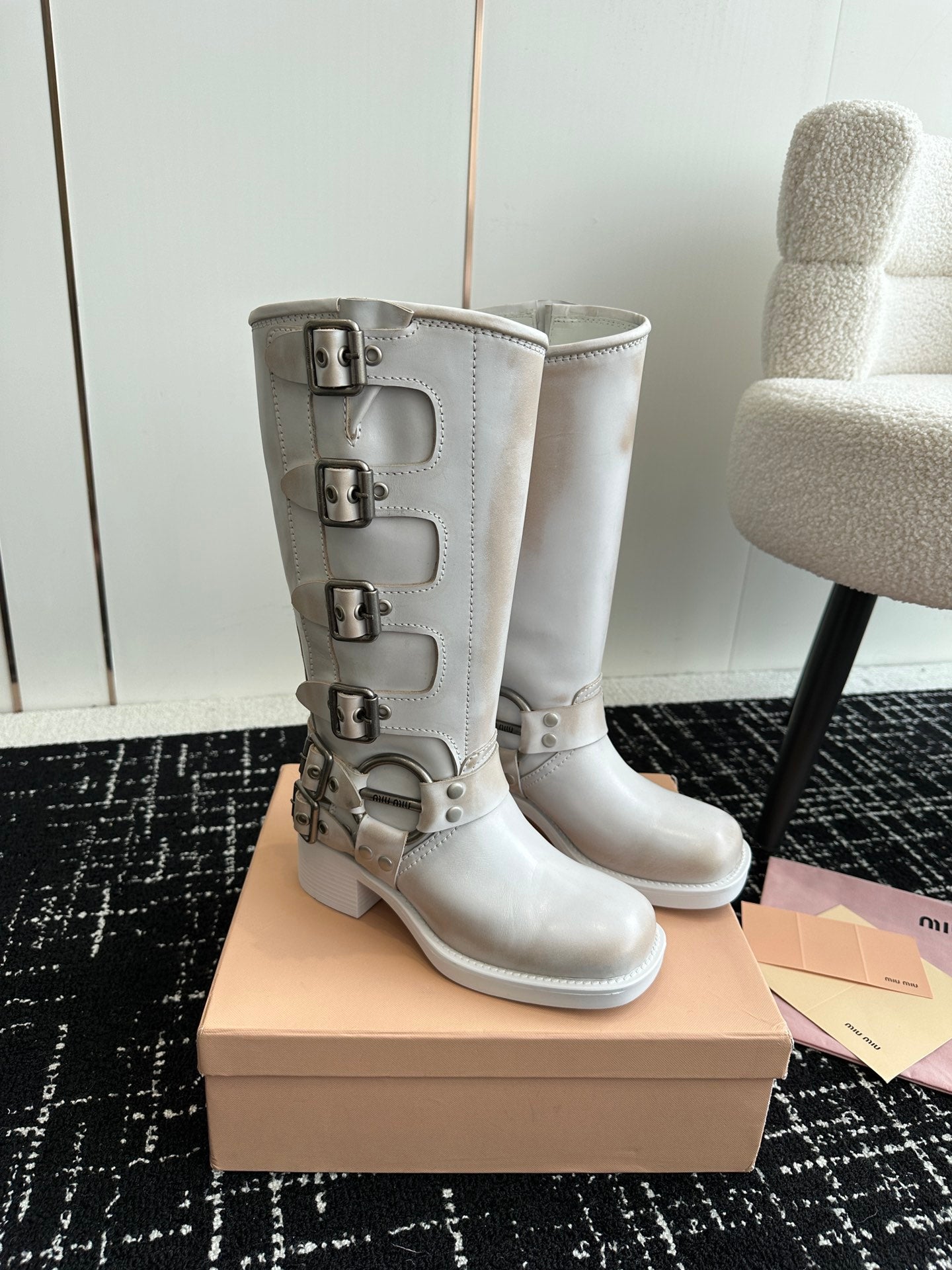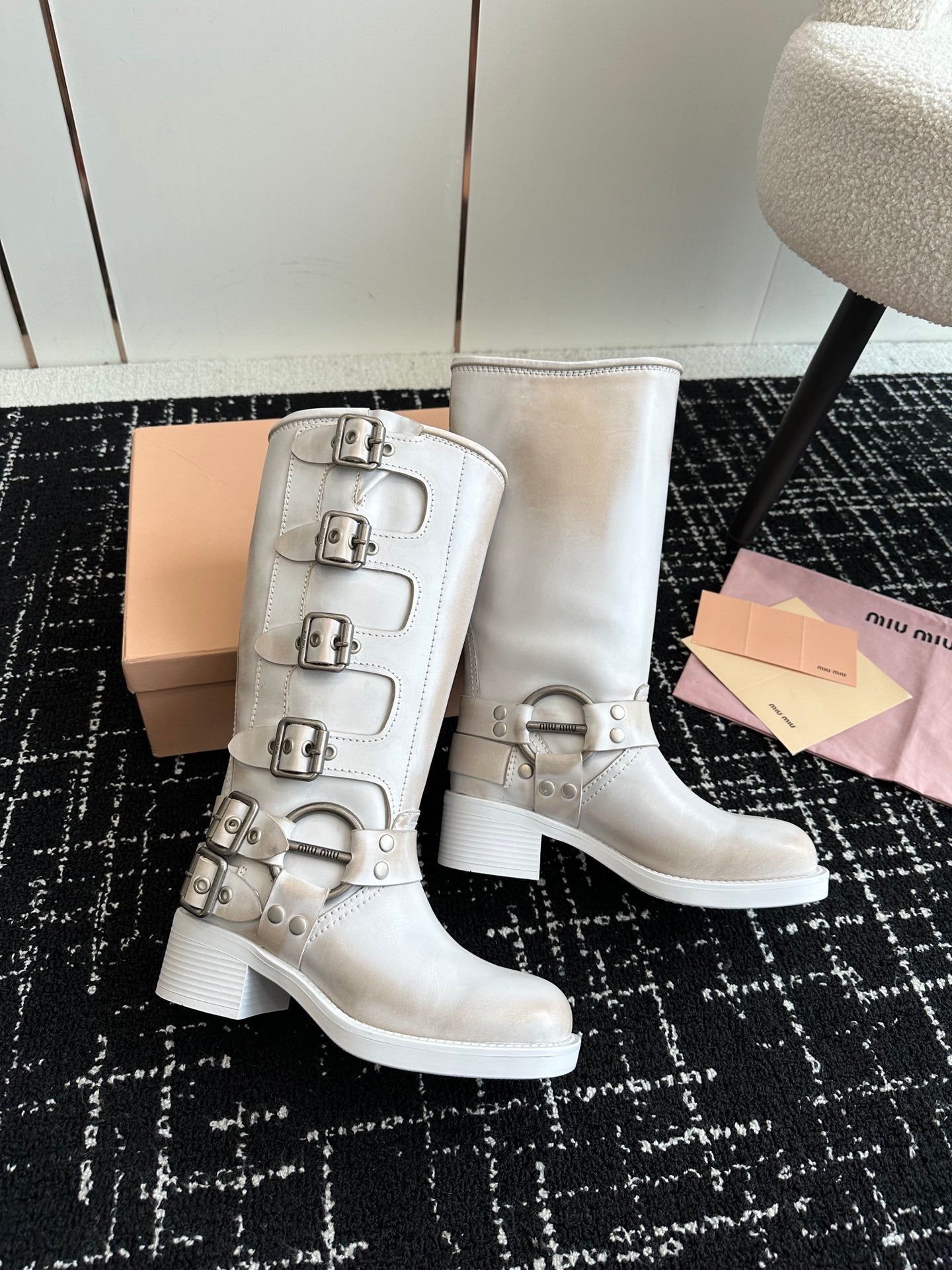 Miu Classic Runway Boots Dirty White Cowhide 455904