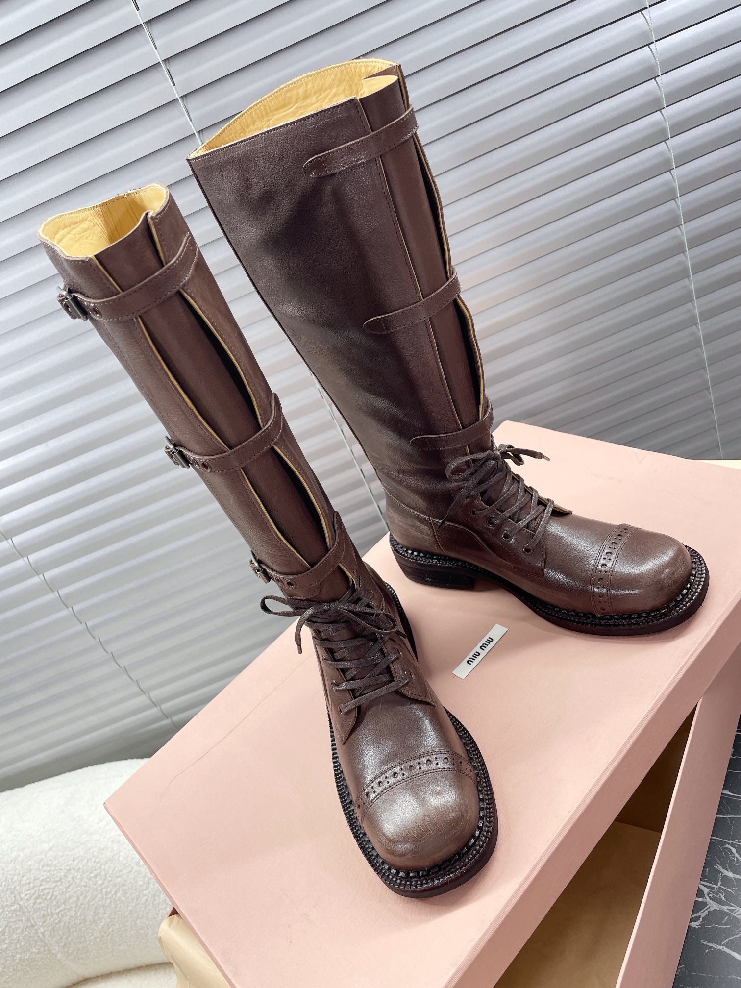 Miu High Boots Brown Soluble In Water Calfskin