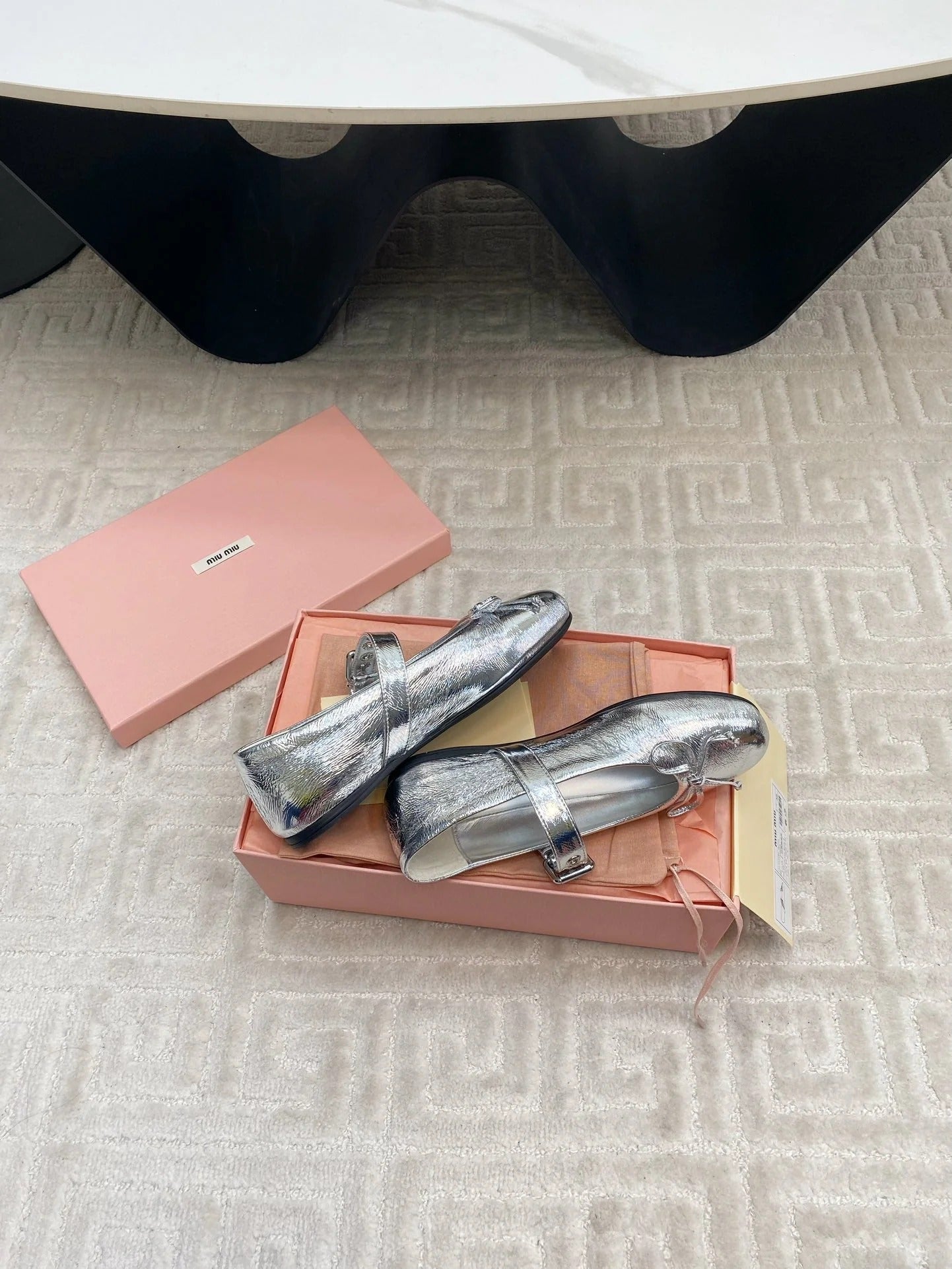 BOW MARY JANE FLAT IN SILVER LAMBSKIN