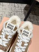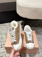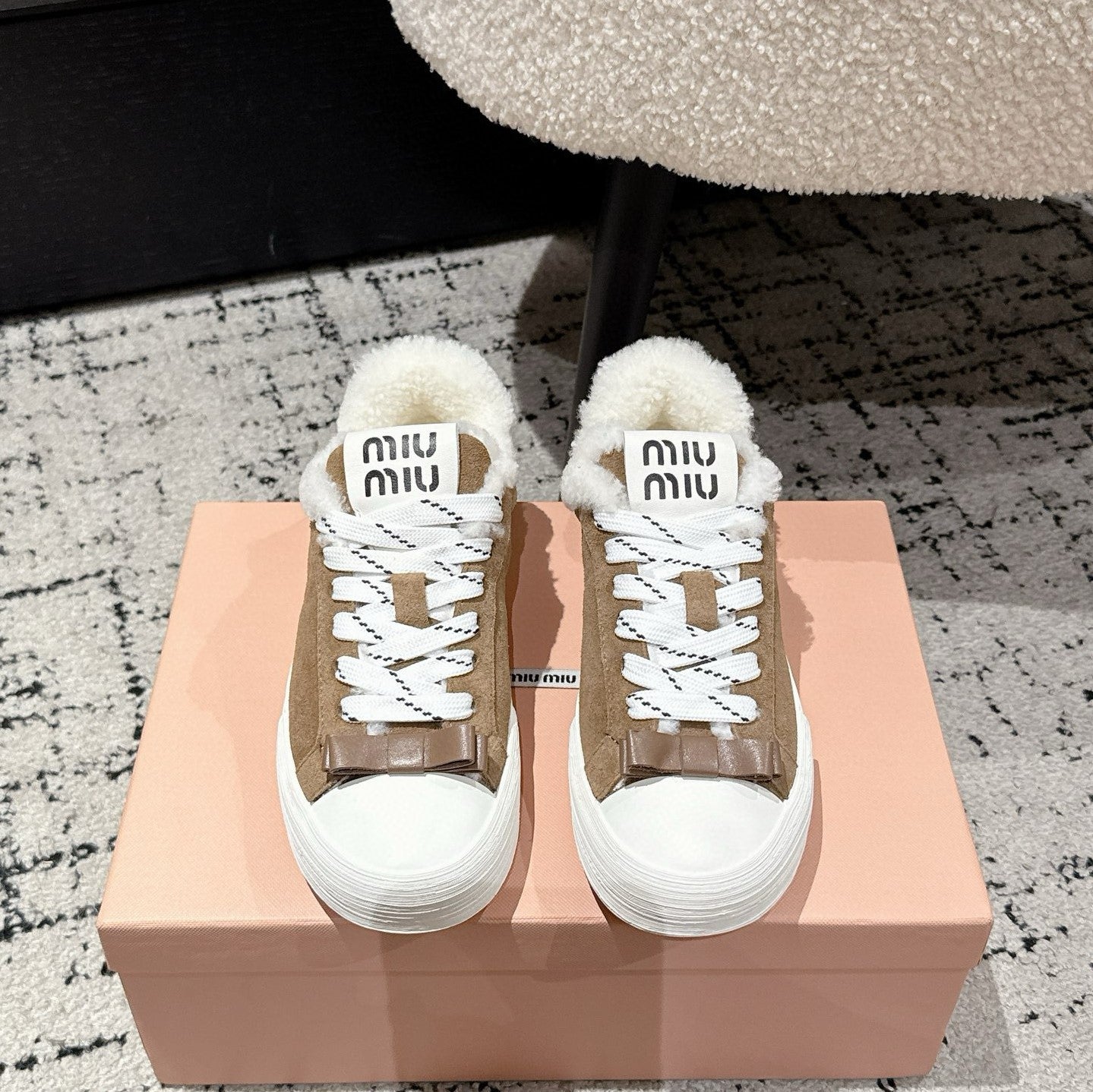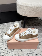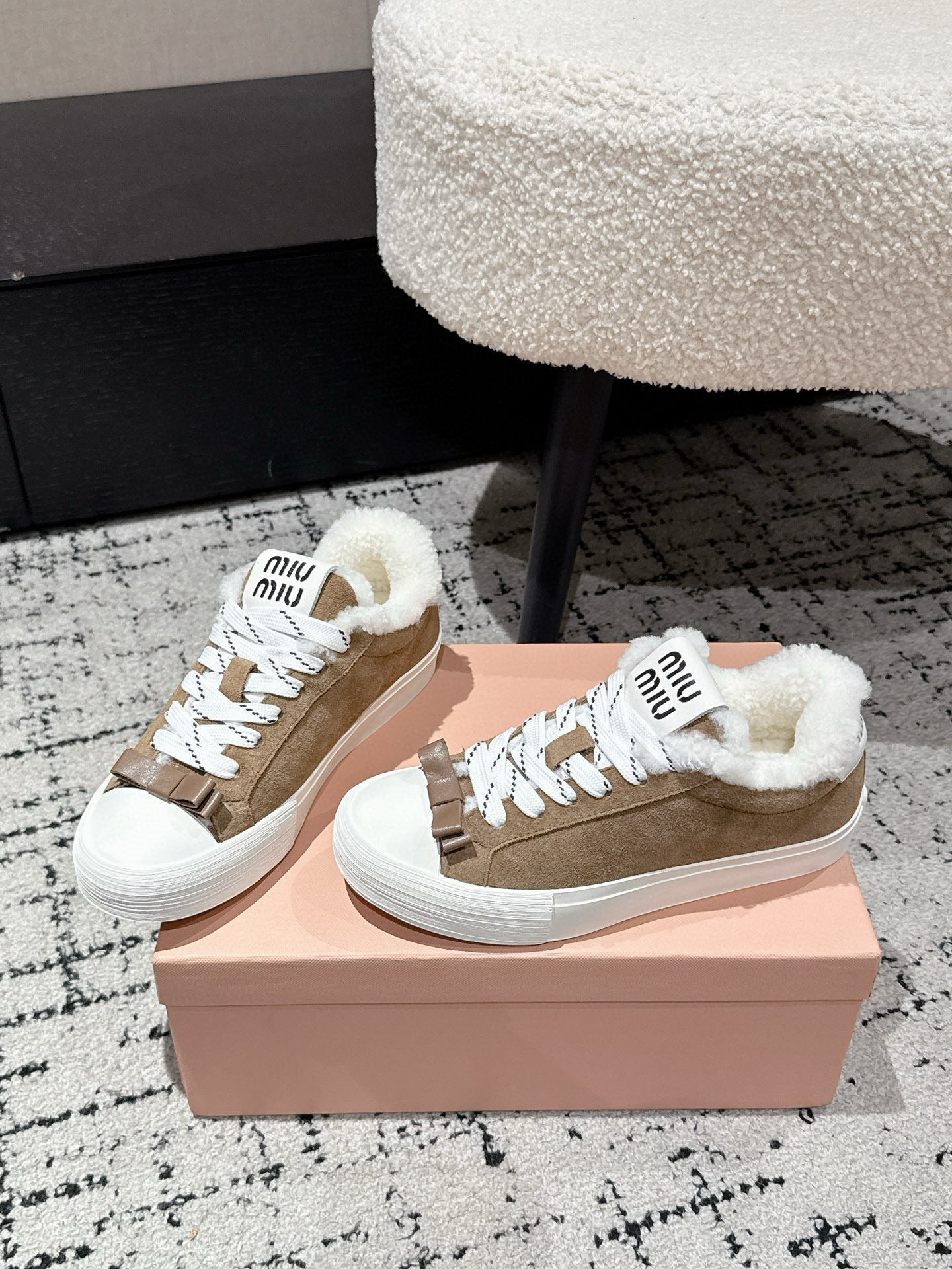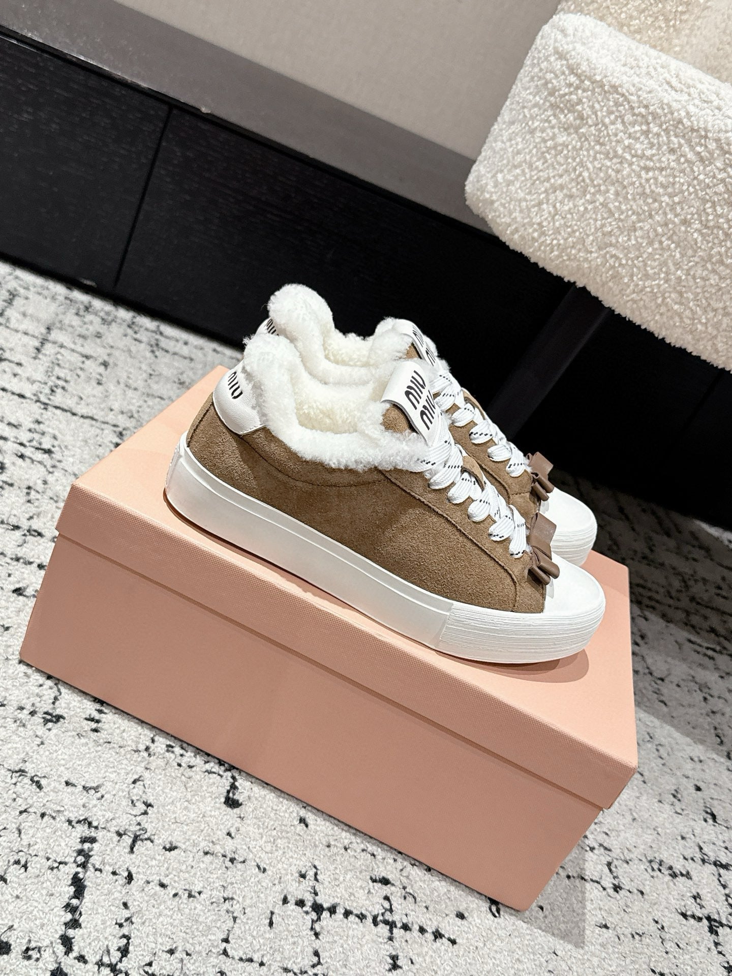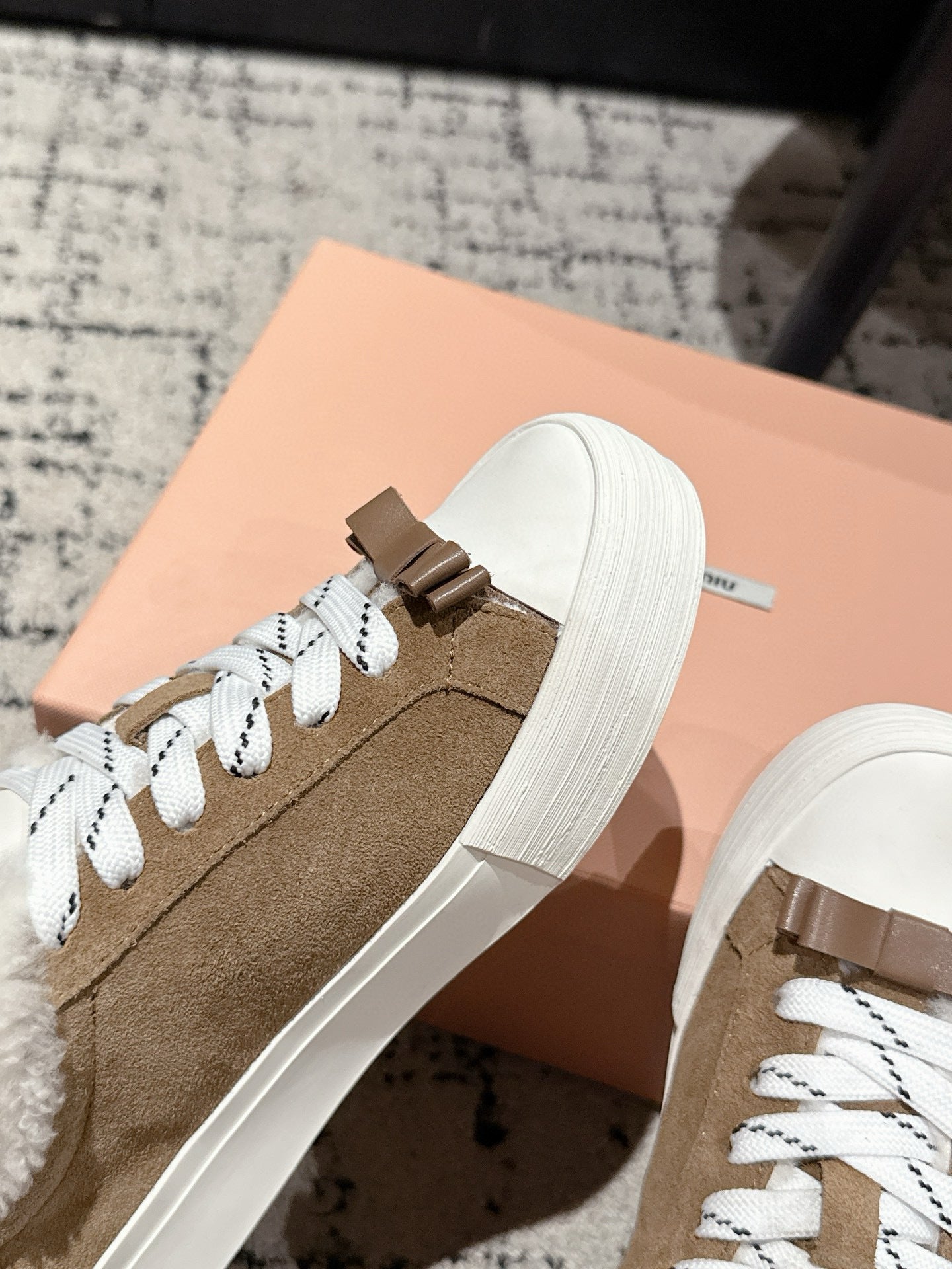 Miu 25 Small Bow Sneaker Coffee White Suede Wool 541921