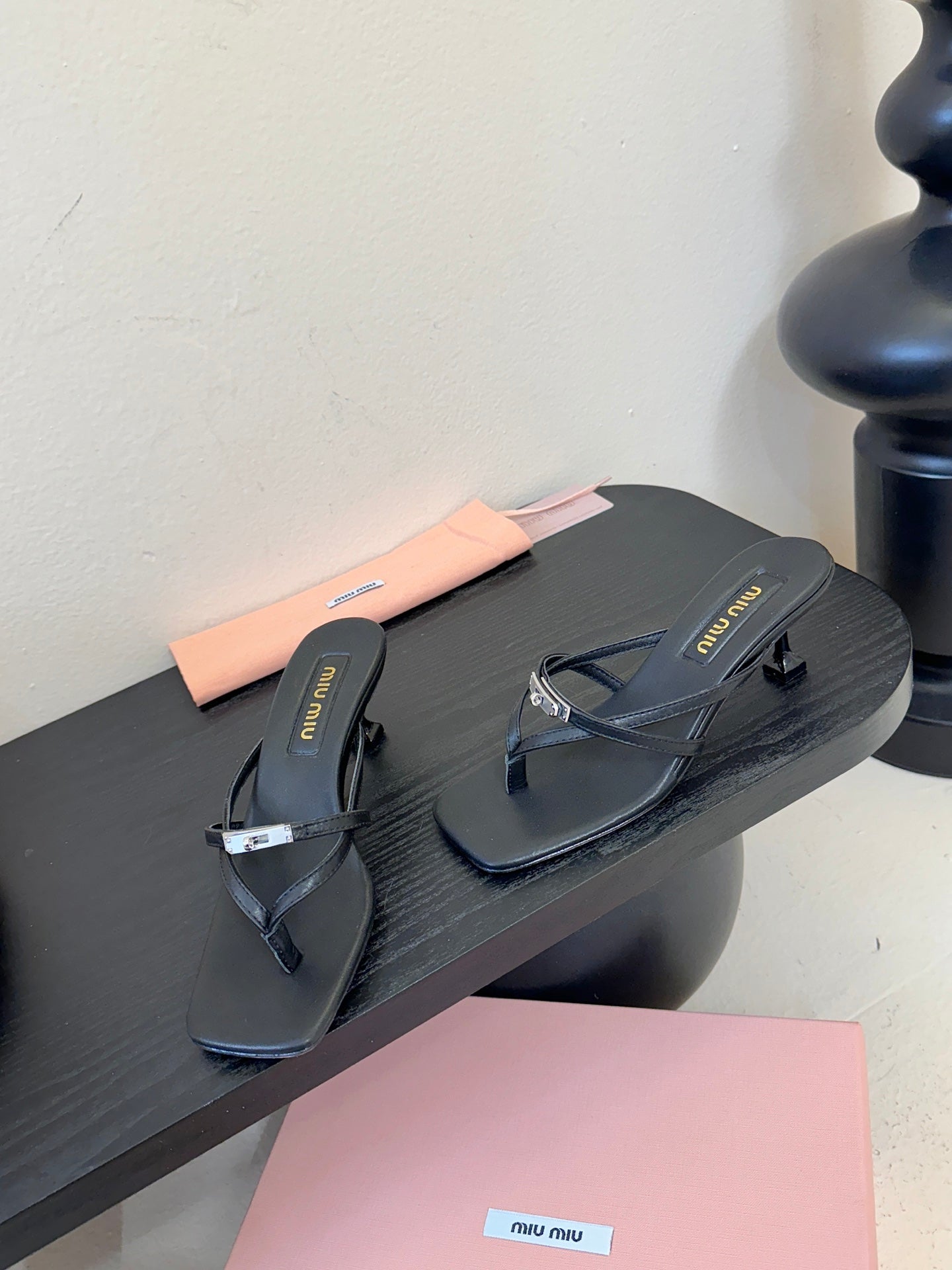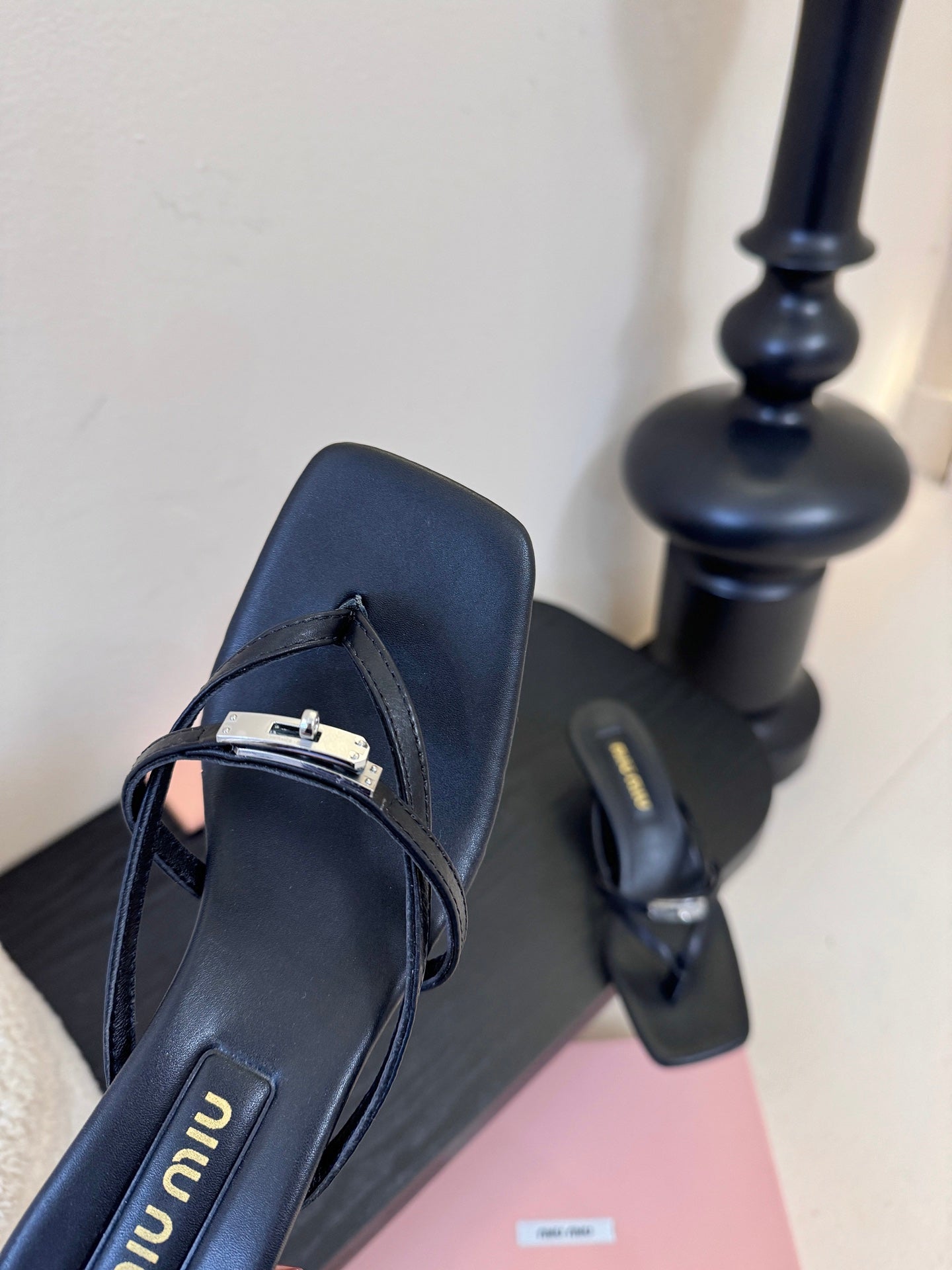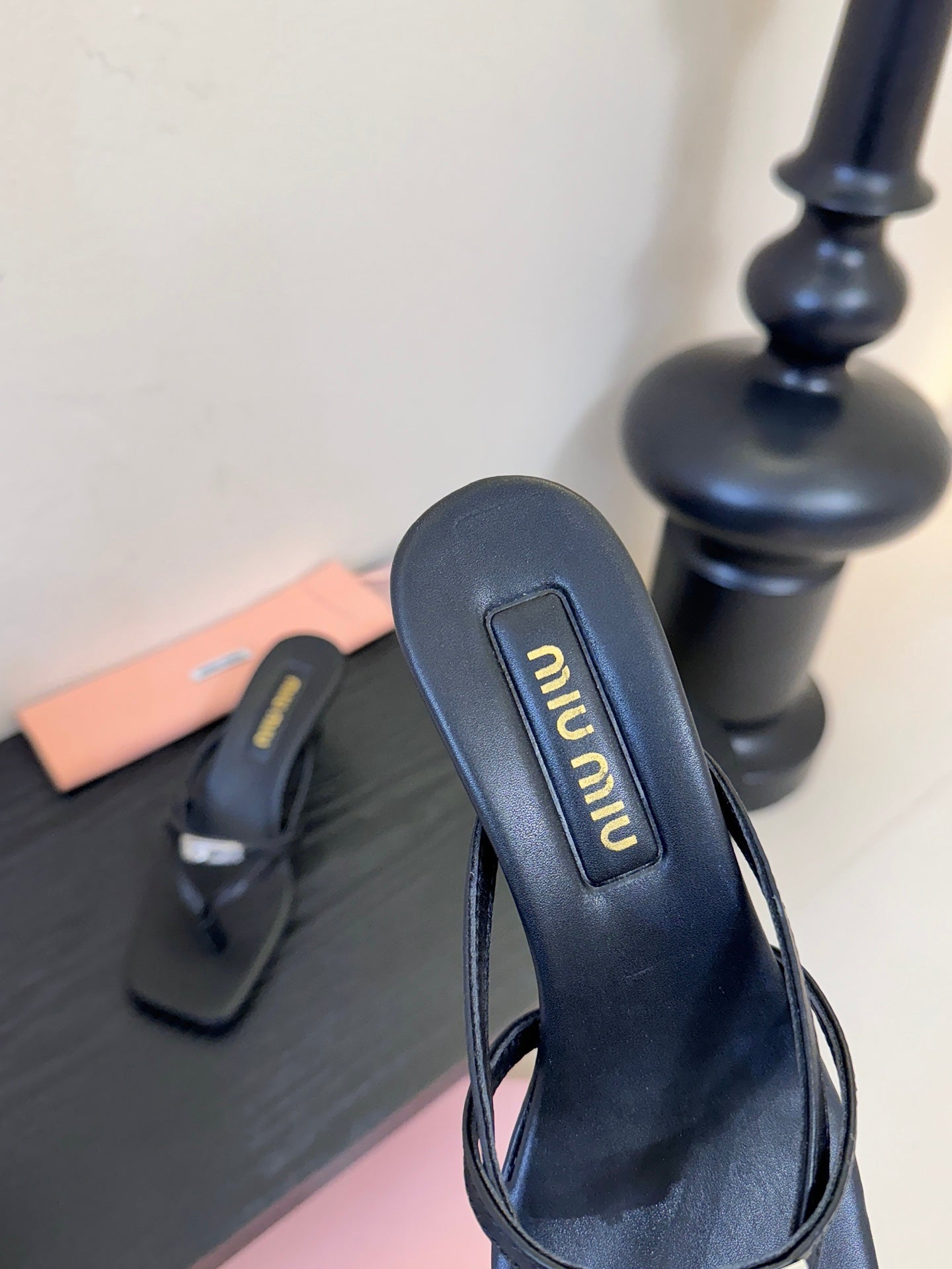Miu 26s High-Heeled Sandals Black Sheepskin 627366
