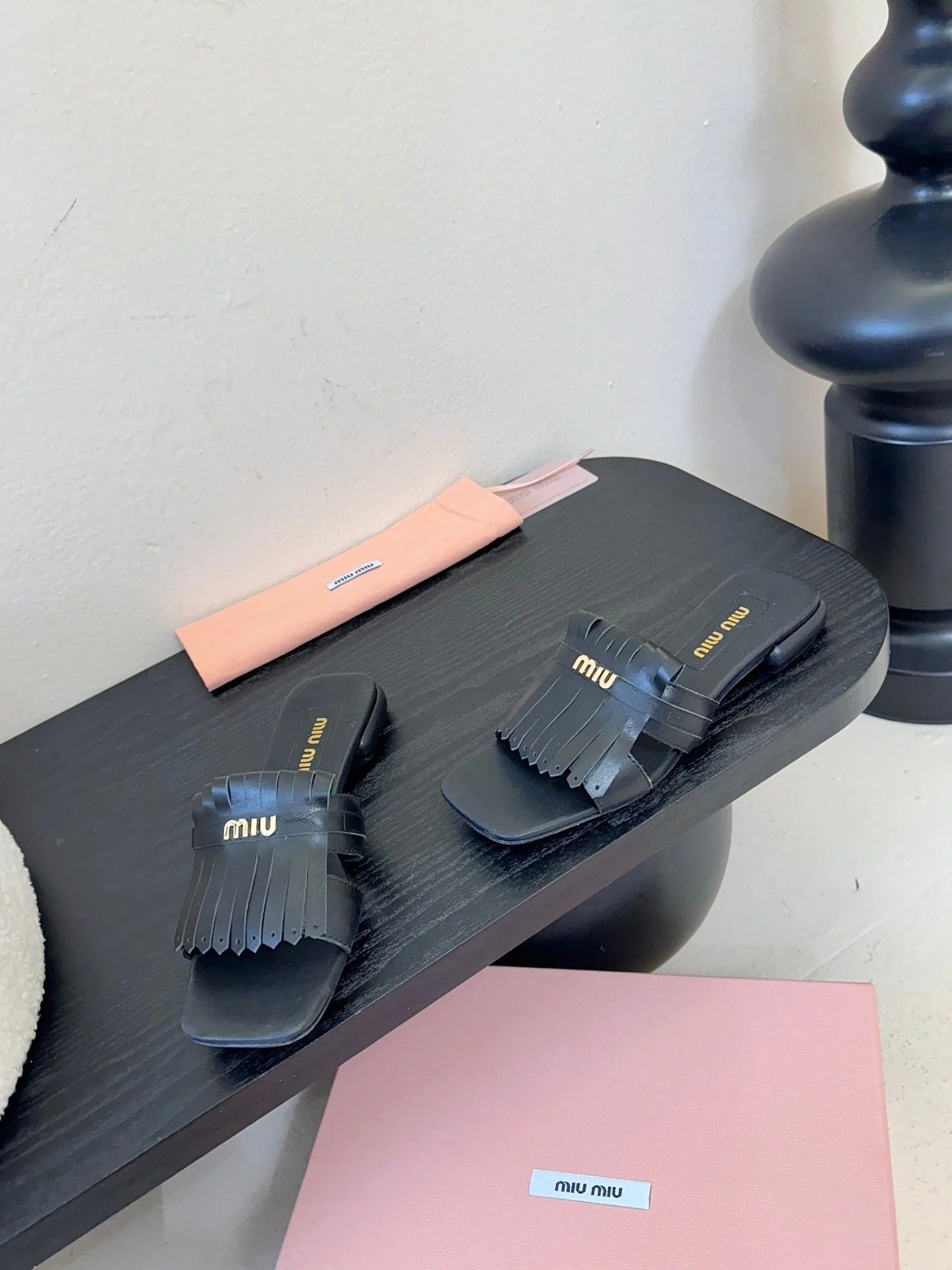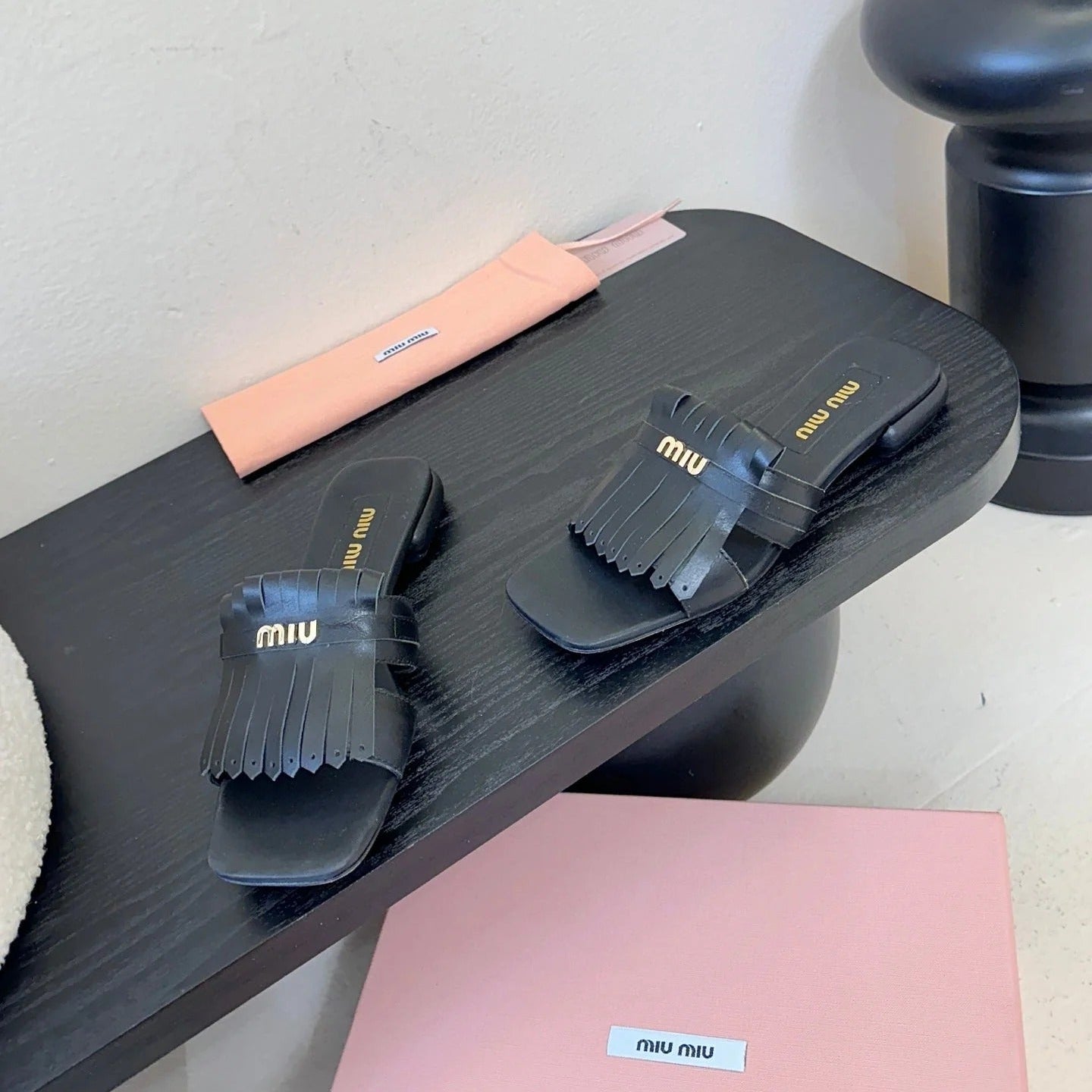 MIU 26ss Sandals Black Sheepskin 627362