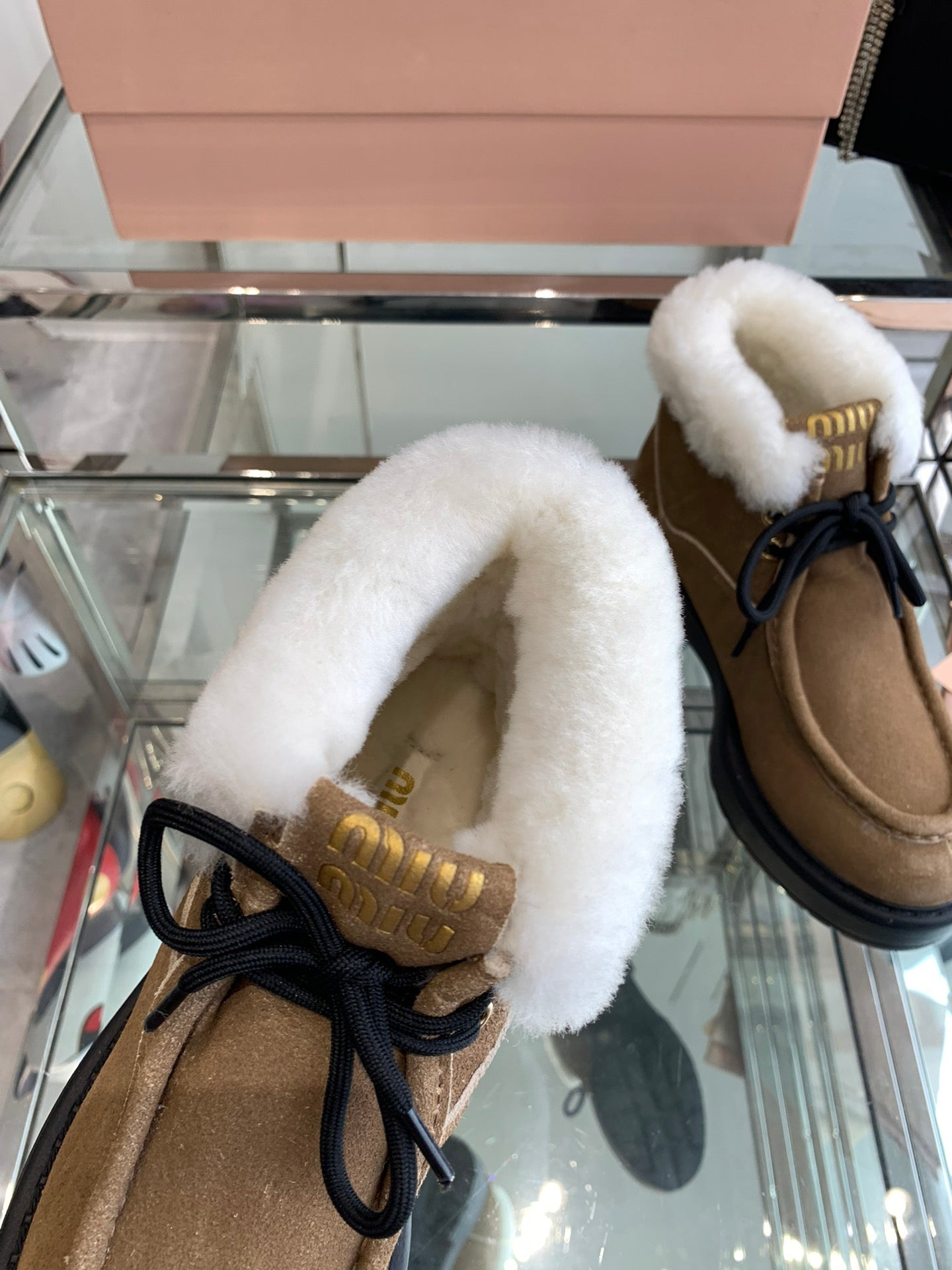 Miu Ankle Boots Vintage Brown Open-Hemmed Cowhide
