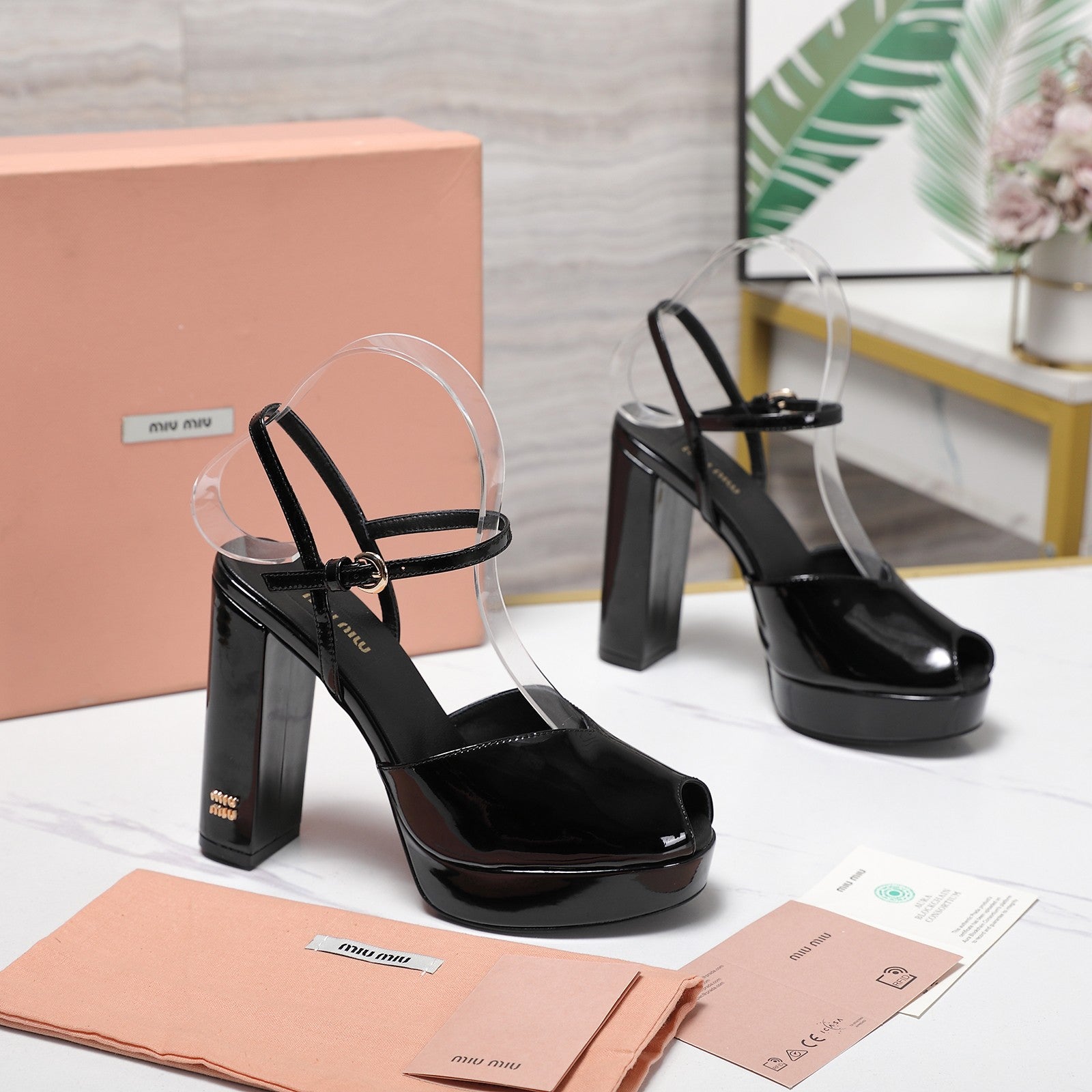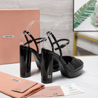 Miu Block-Heel Platform Sandals 125mm Black Patent Leather 504179