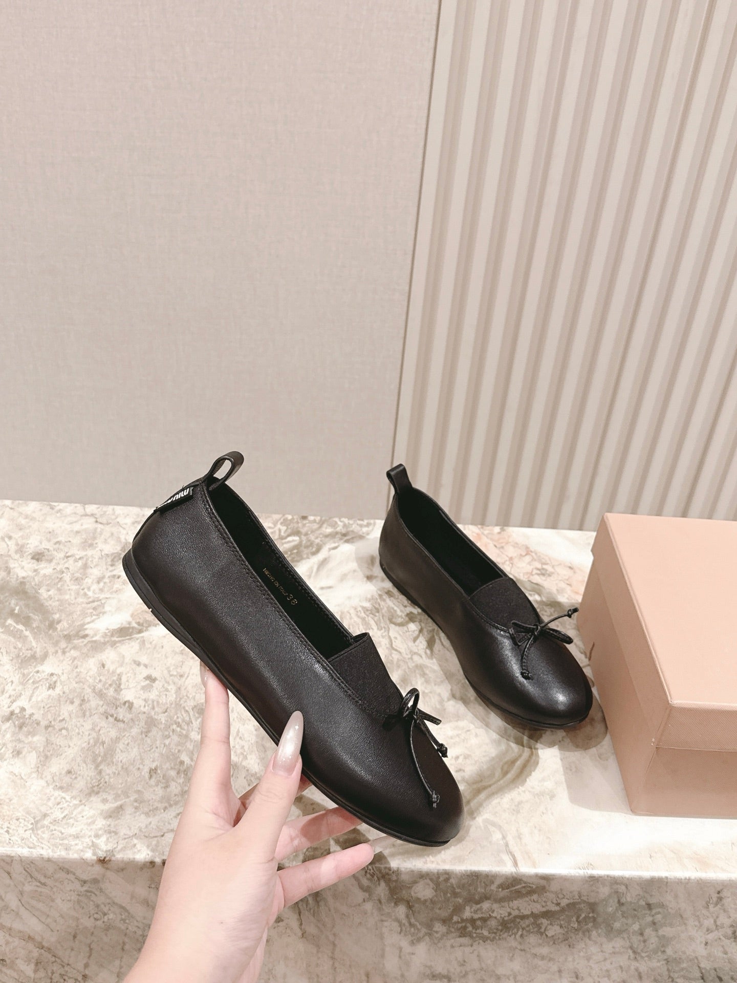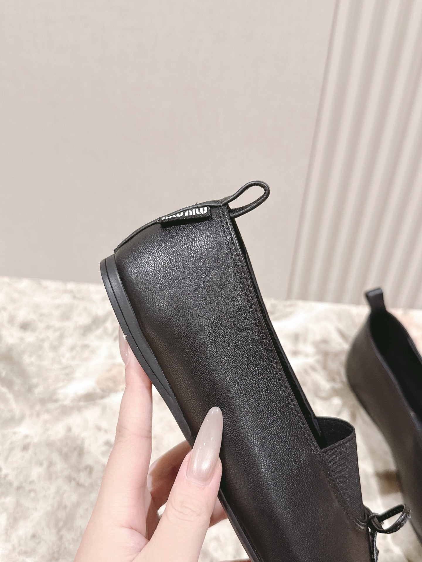 Miu Élan Bow-Detail Ballet Flat Black Cowhide 445803