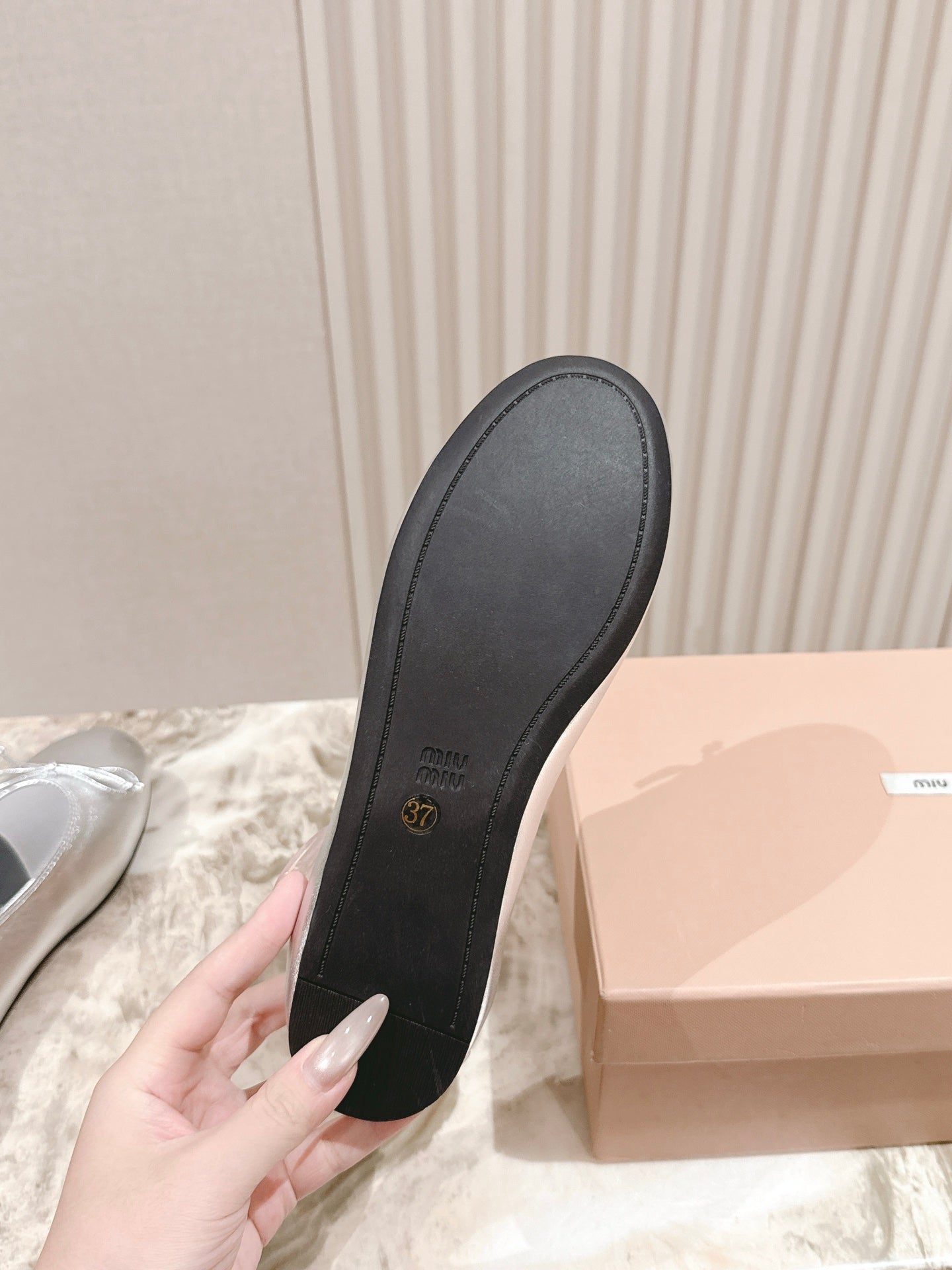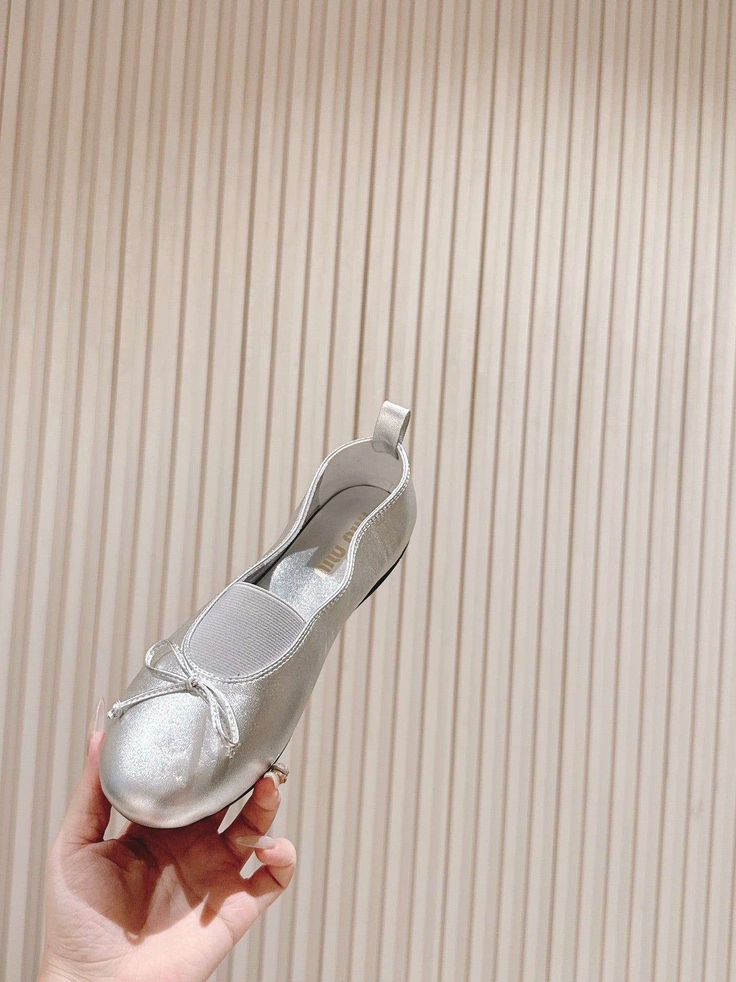 Miu Élan Bow-Detail Ballet Flat Sliver Metallic Leather 445803
