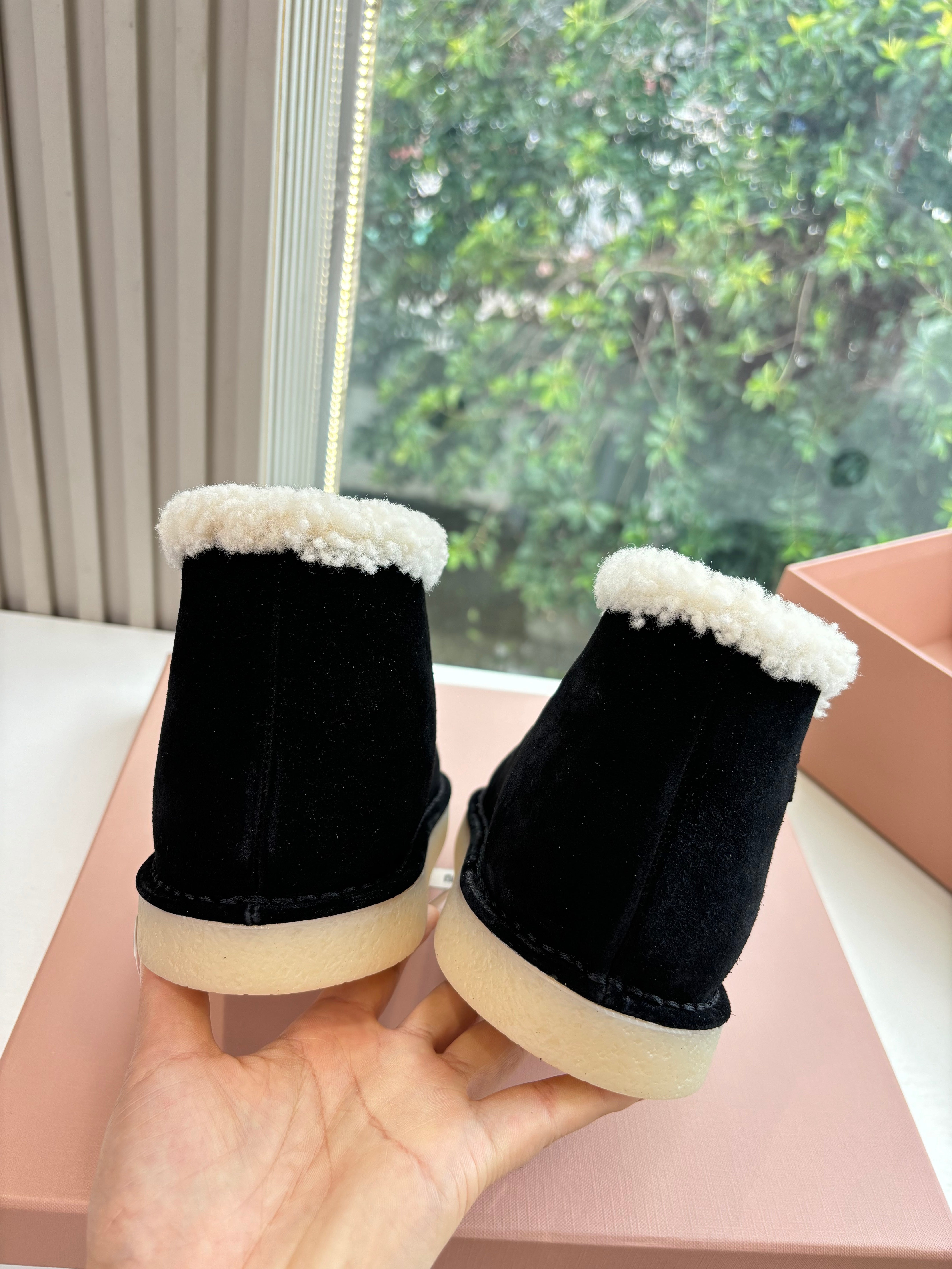 Miu FW25 Snow Boots Black White Wool Suede 506651
