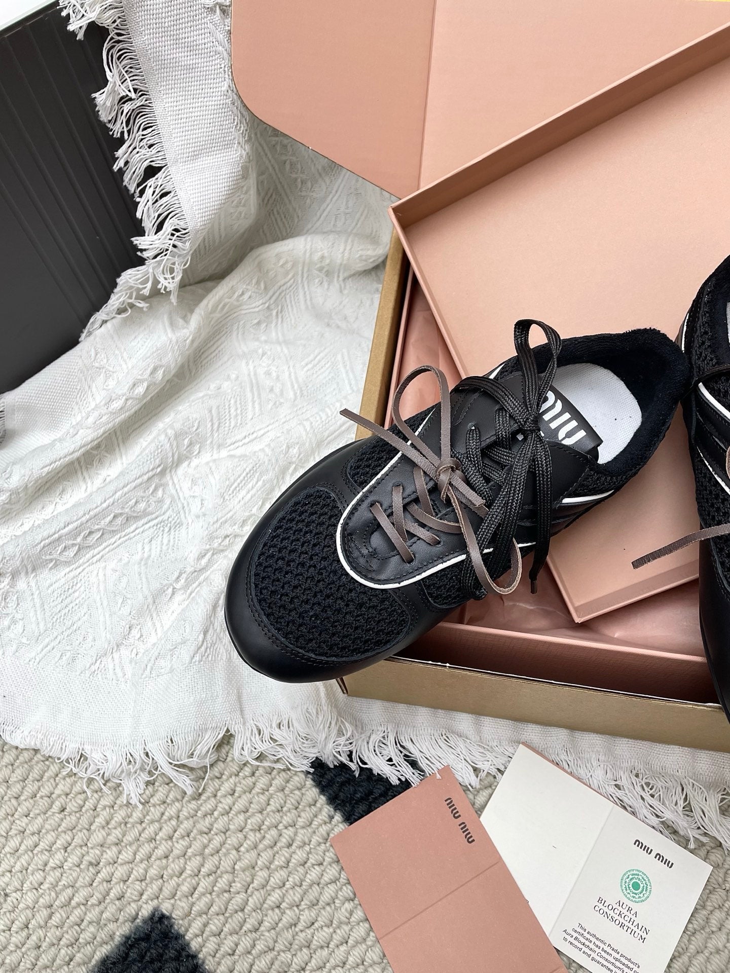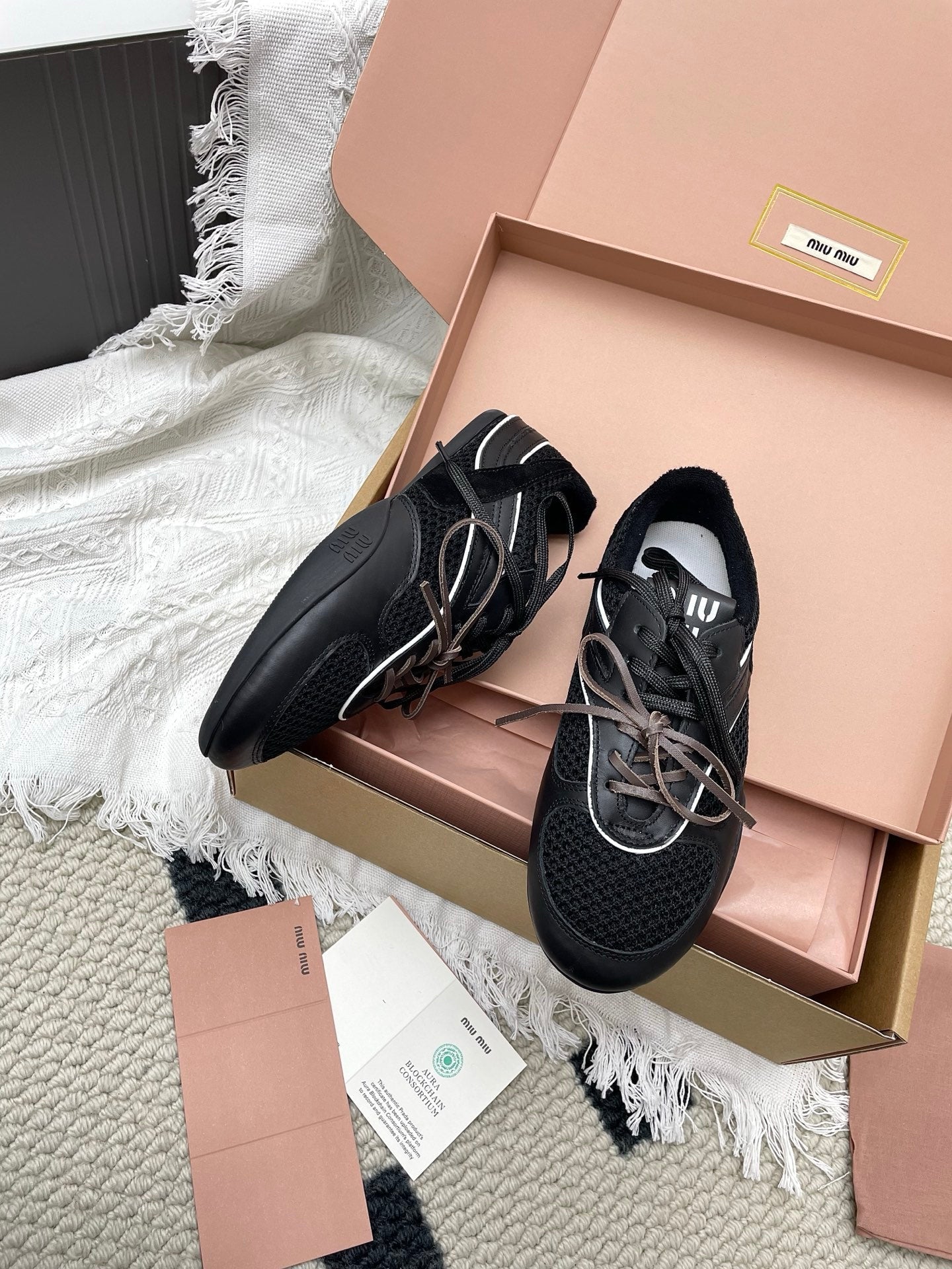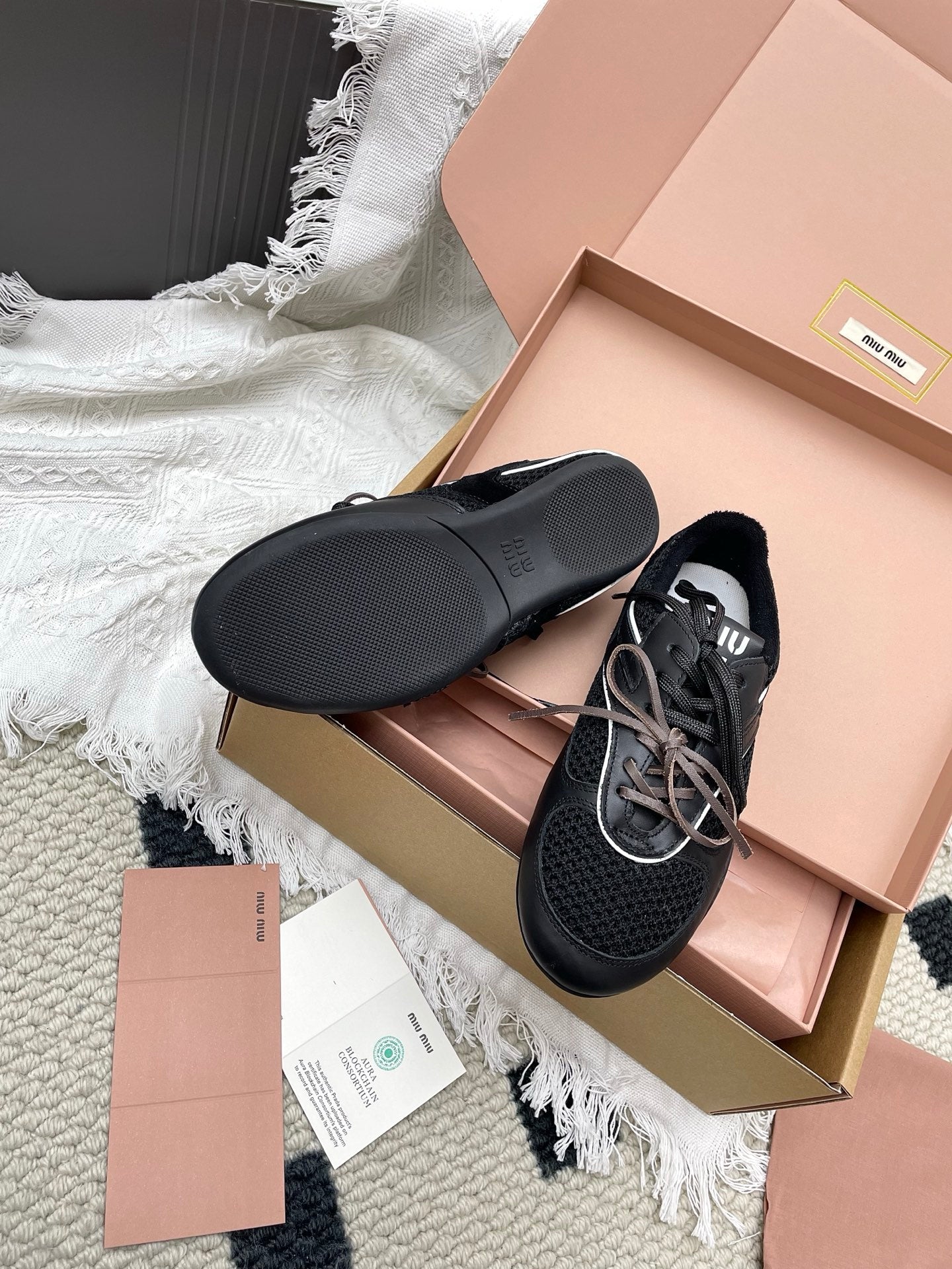 Miu Gymnasium Sneaker Black Mesh Suede 611345