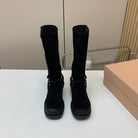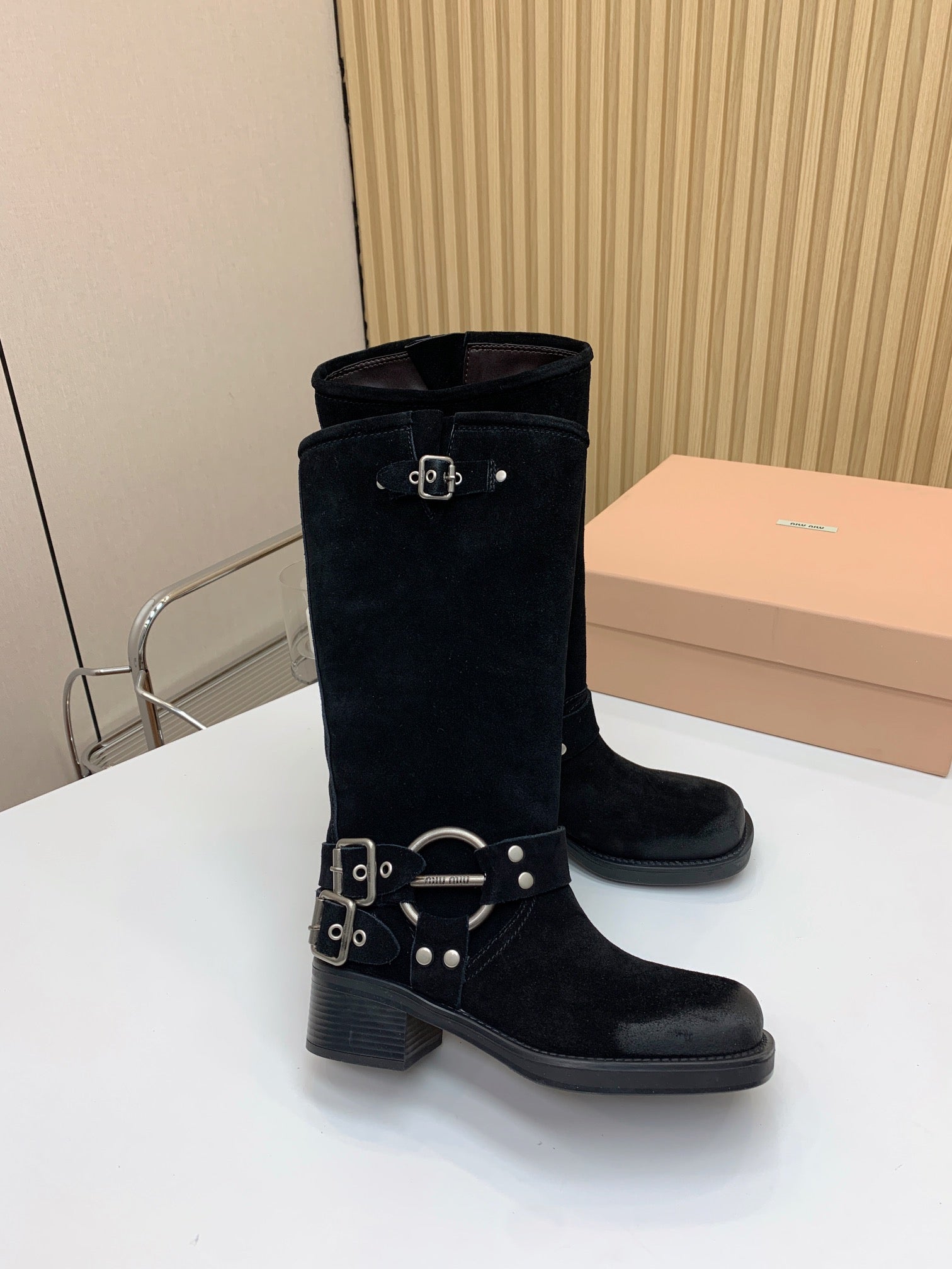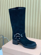 Miu Miu Biker Retro-Style Long Boots Boots Black Suede 535200