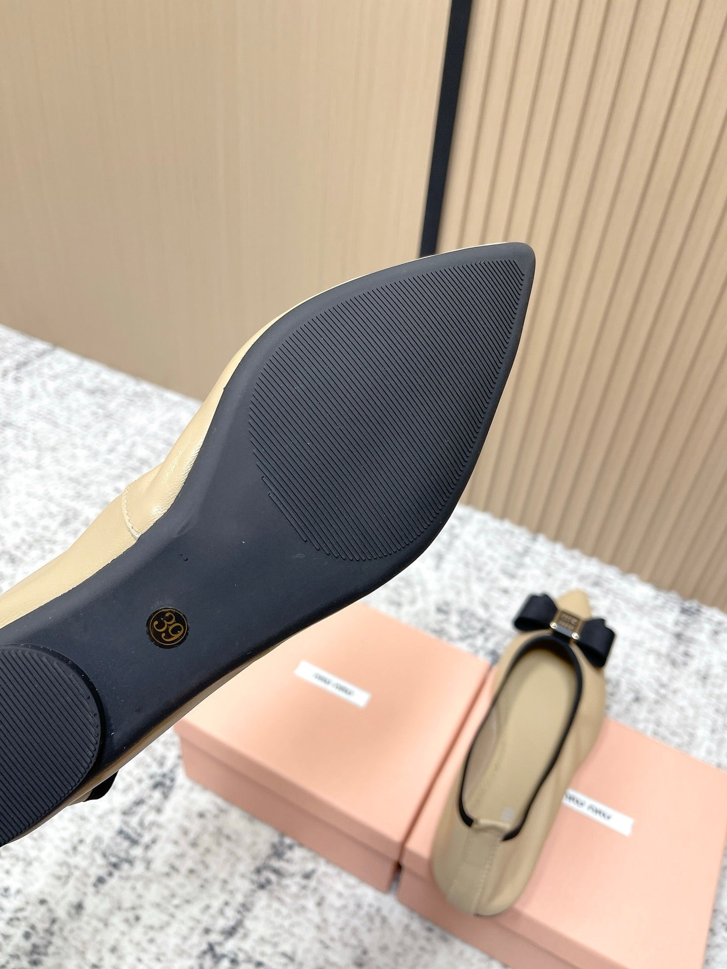Miu Pointed-Toe Ballet Flats Beige Black Sheepskin 591562