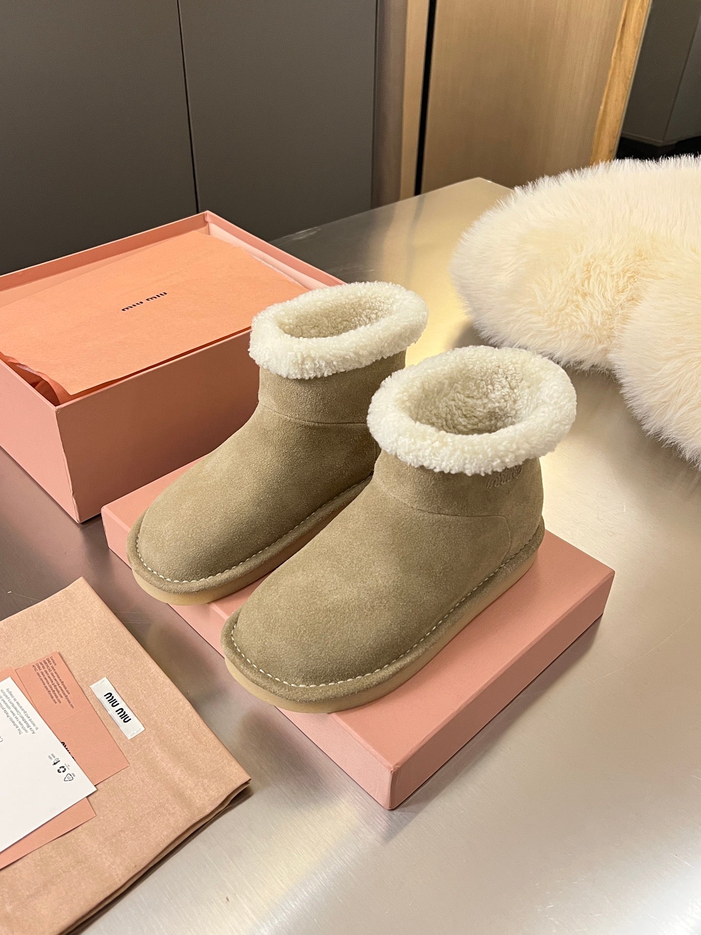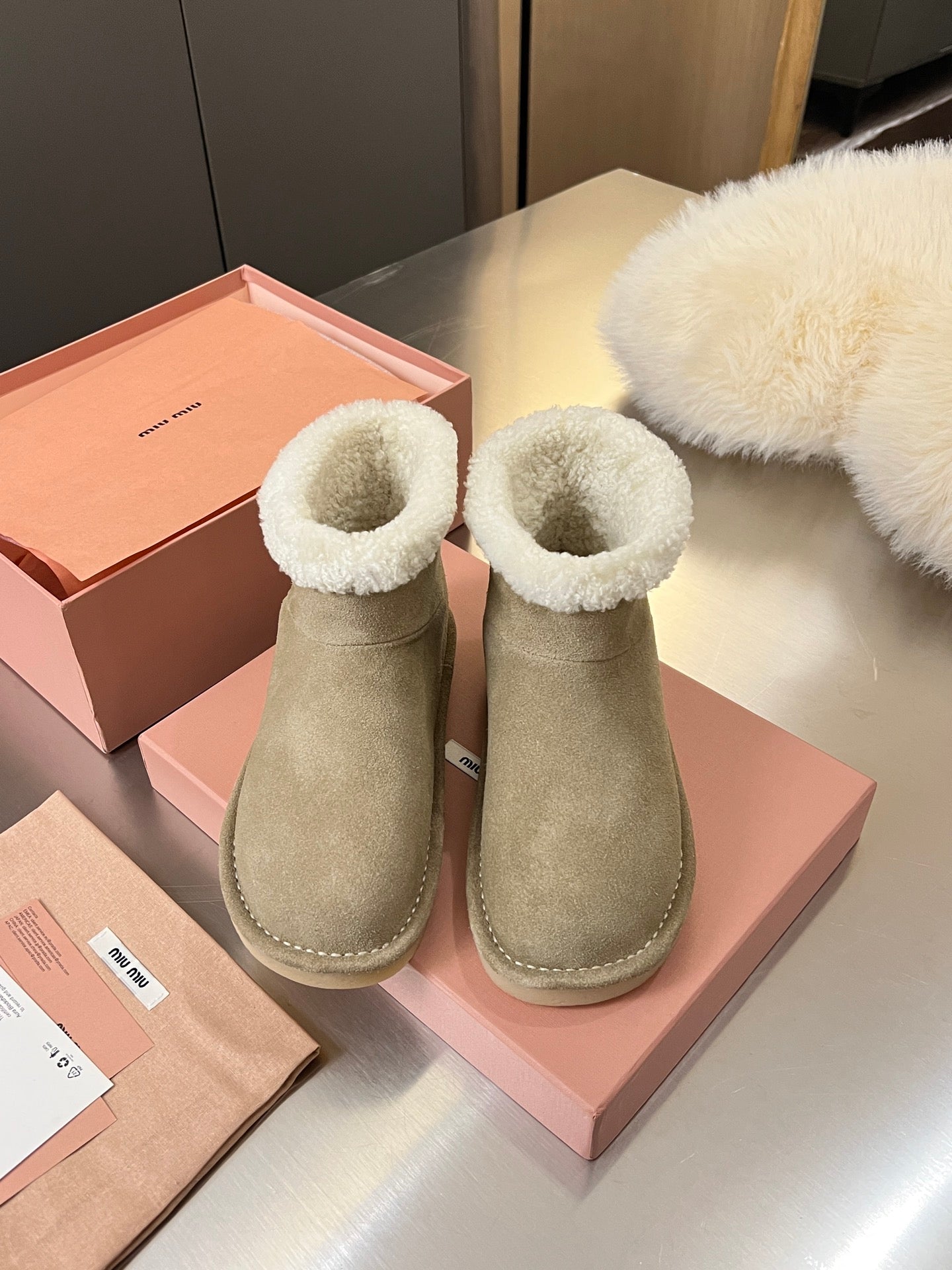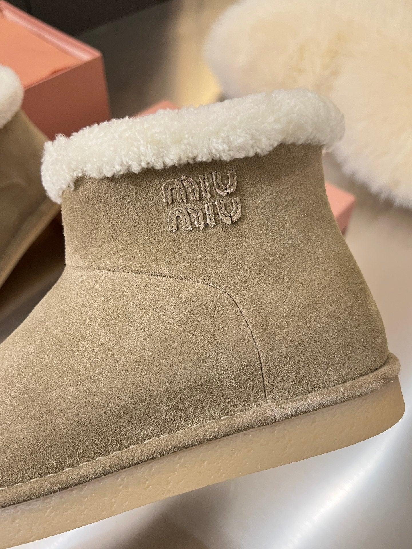 Miumiu 25 Boot Beige White Suede Wool 510221