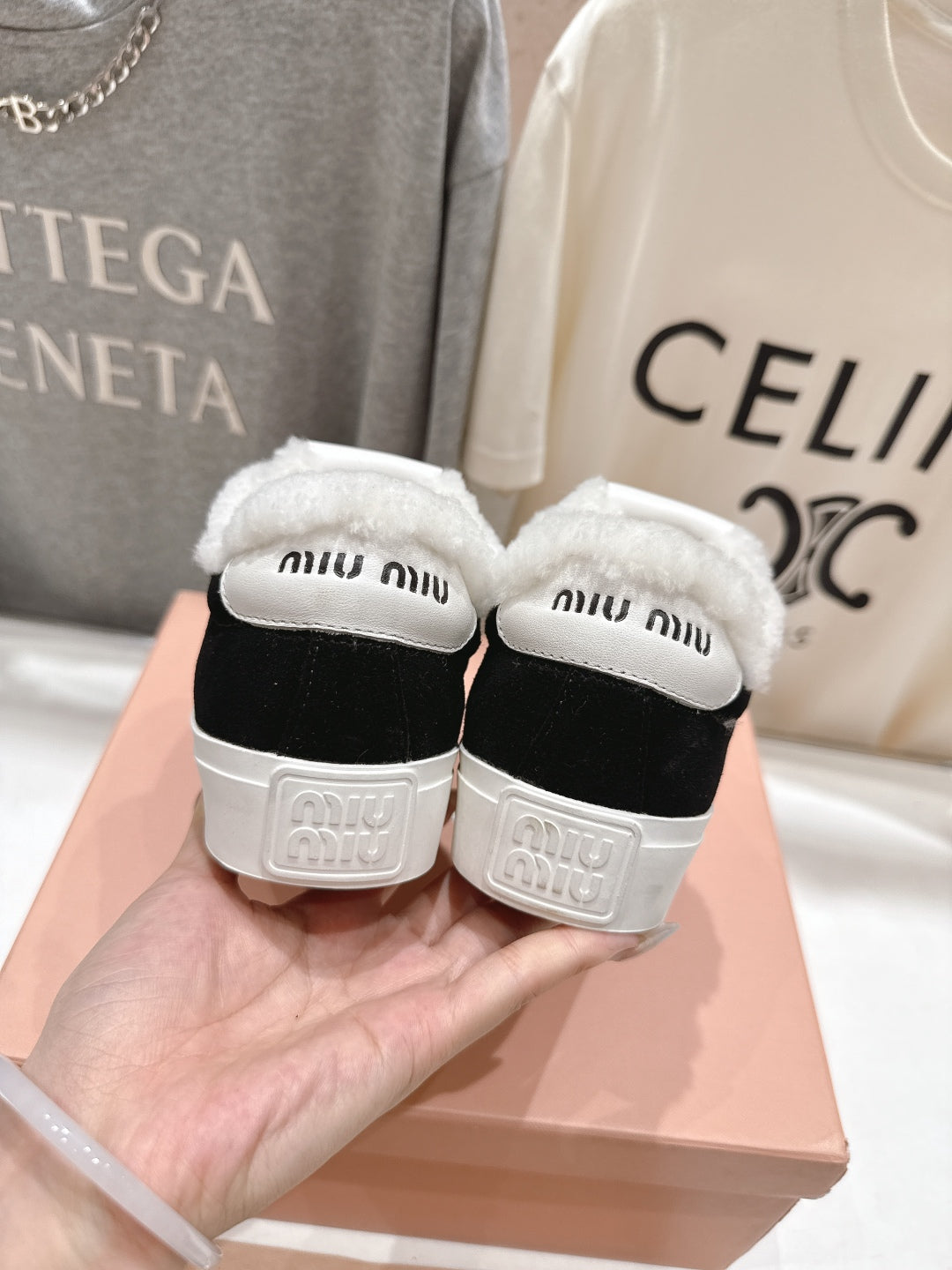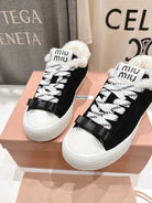 MiuMiu 25 Sneaker Black White Suede Cowhide Fur 535586