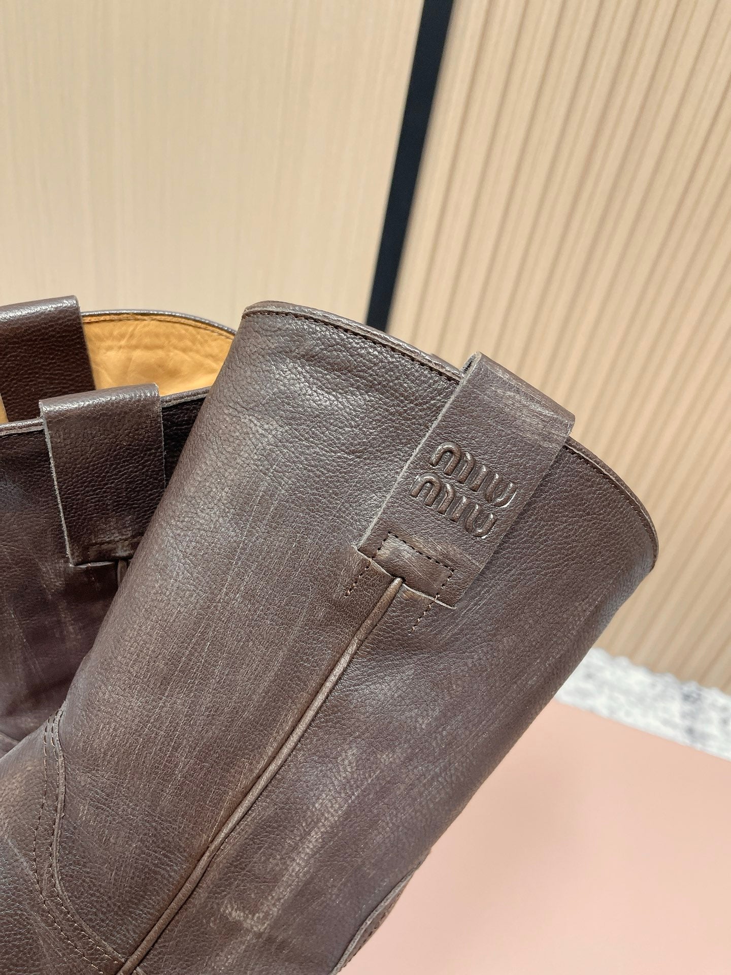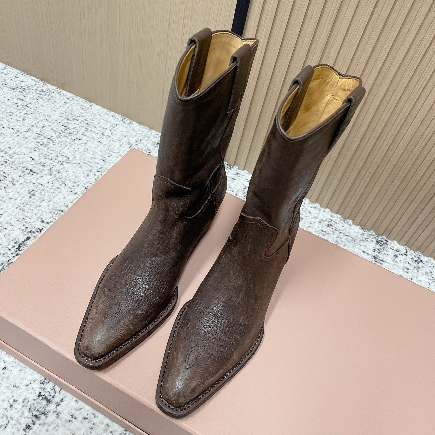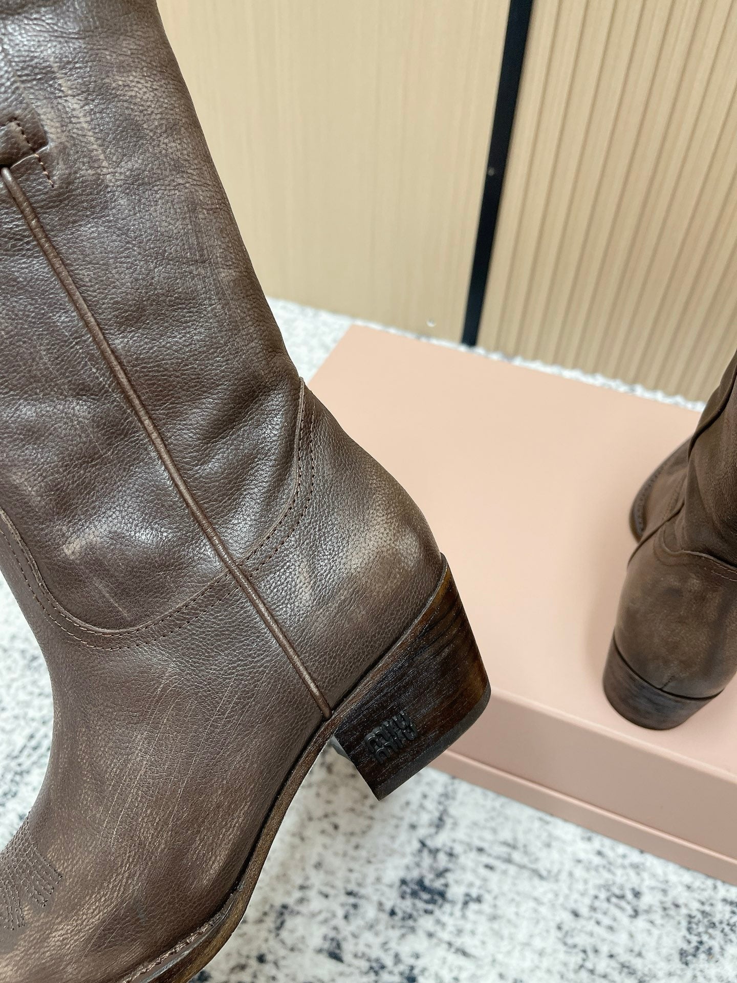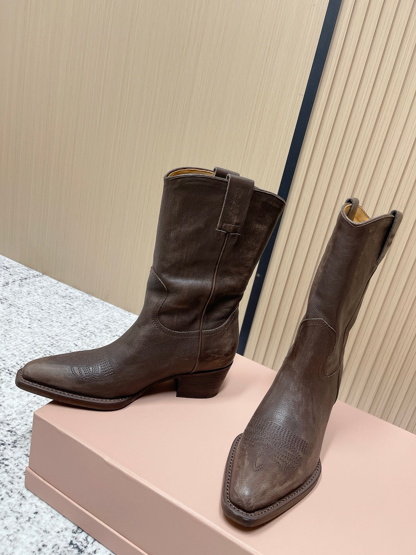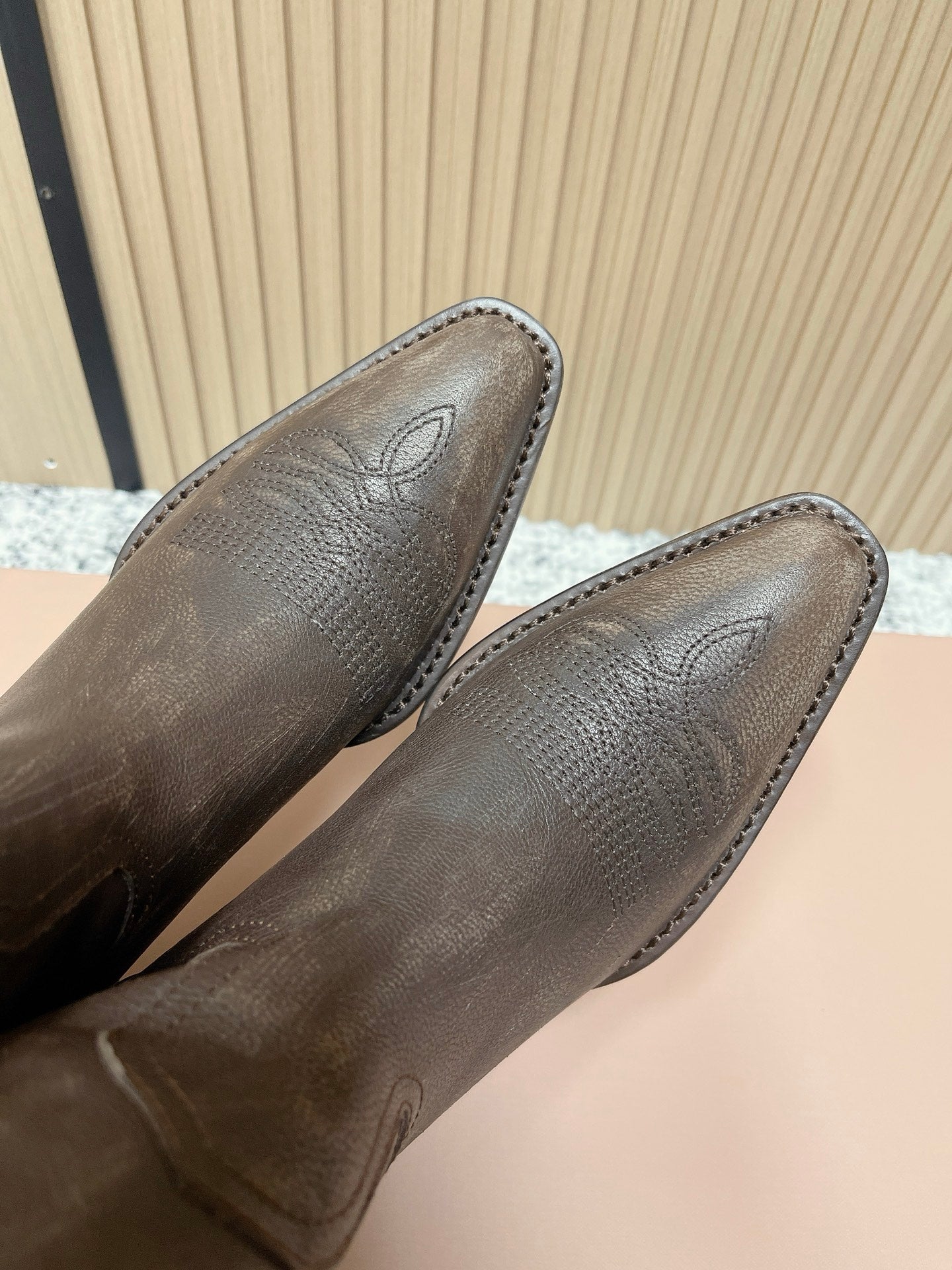 Miumiu Latest FW Western Cowboy Boots Brown Genuine Leather 533965