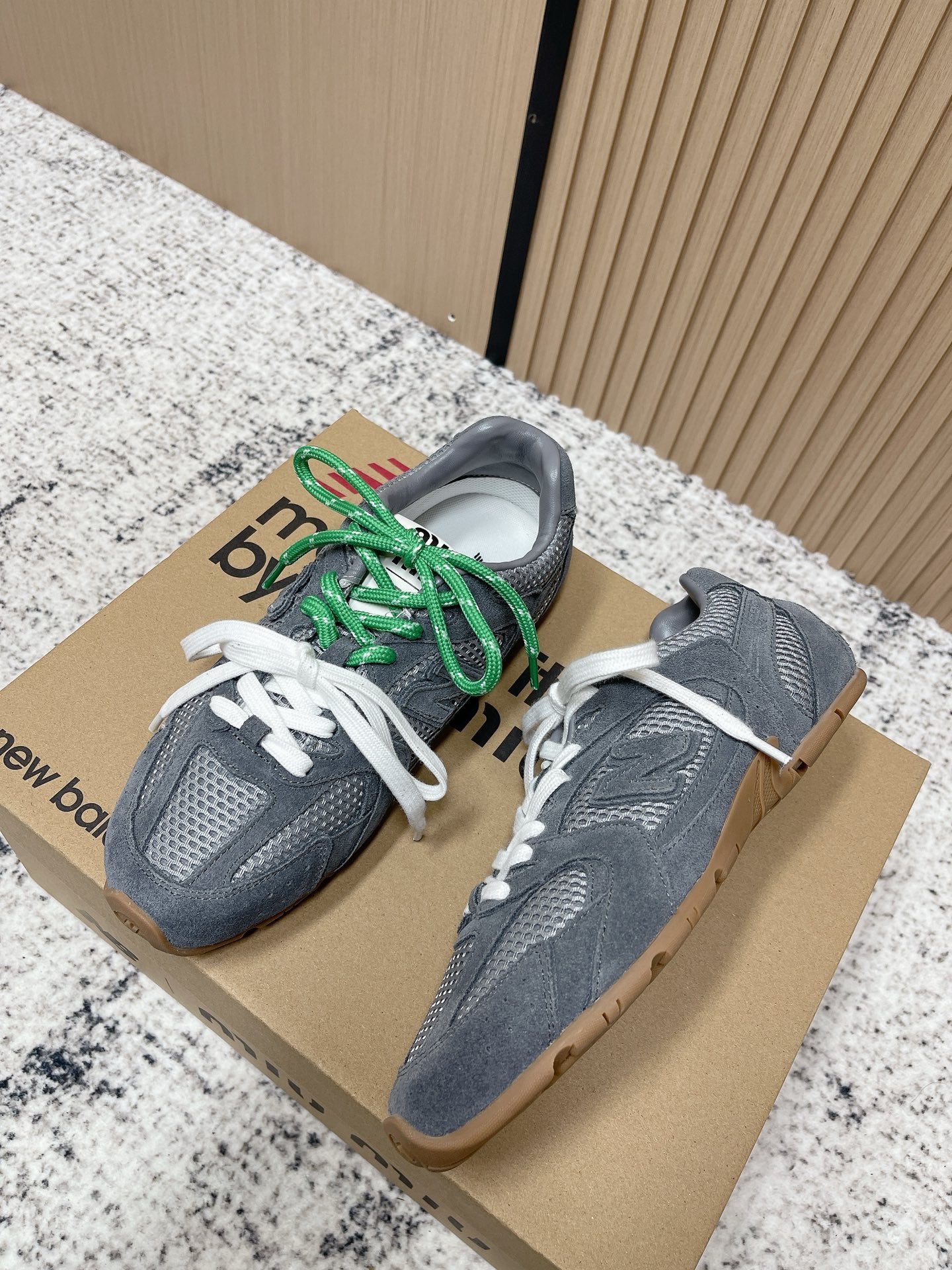 MiuMiu x New Balance Casual Sneakers Gray White Green Patent Leather and Mesh 533992