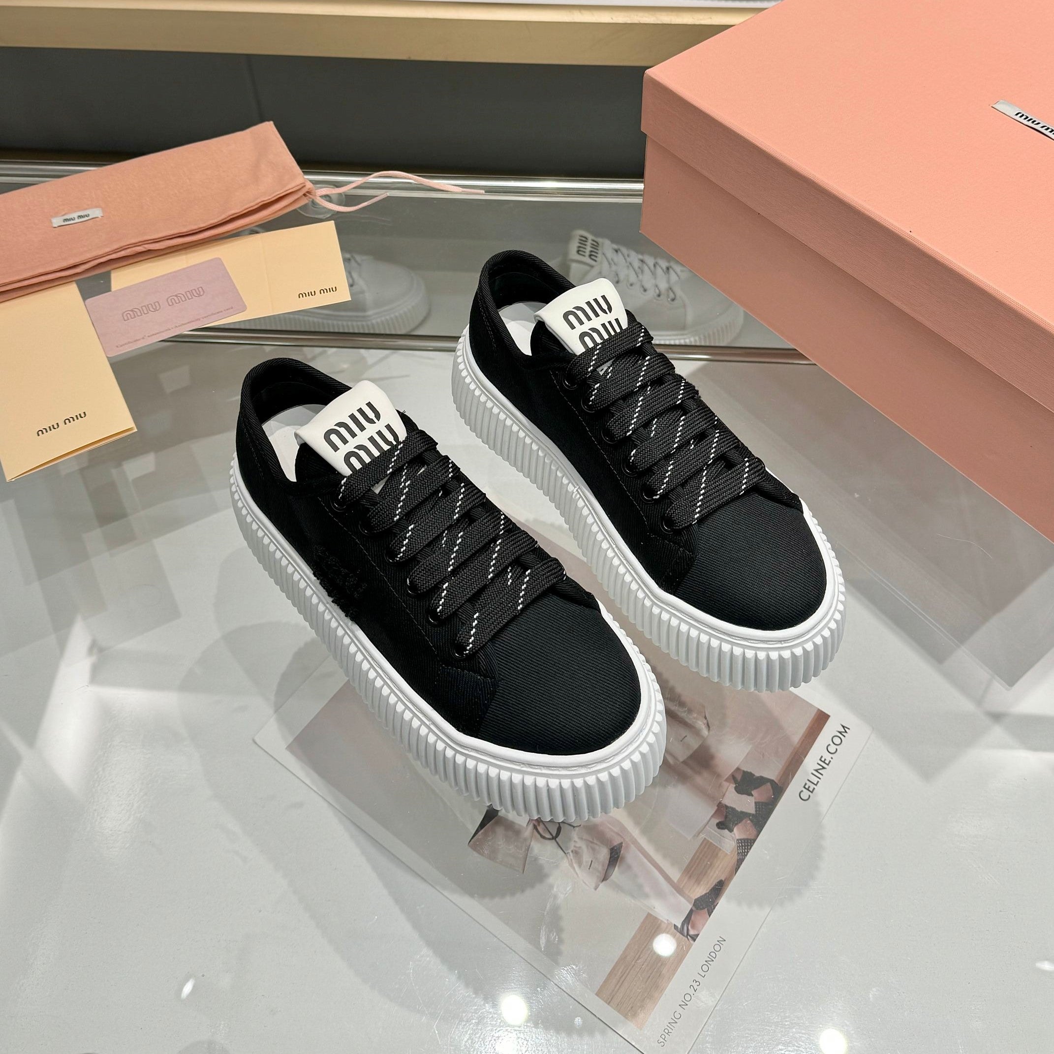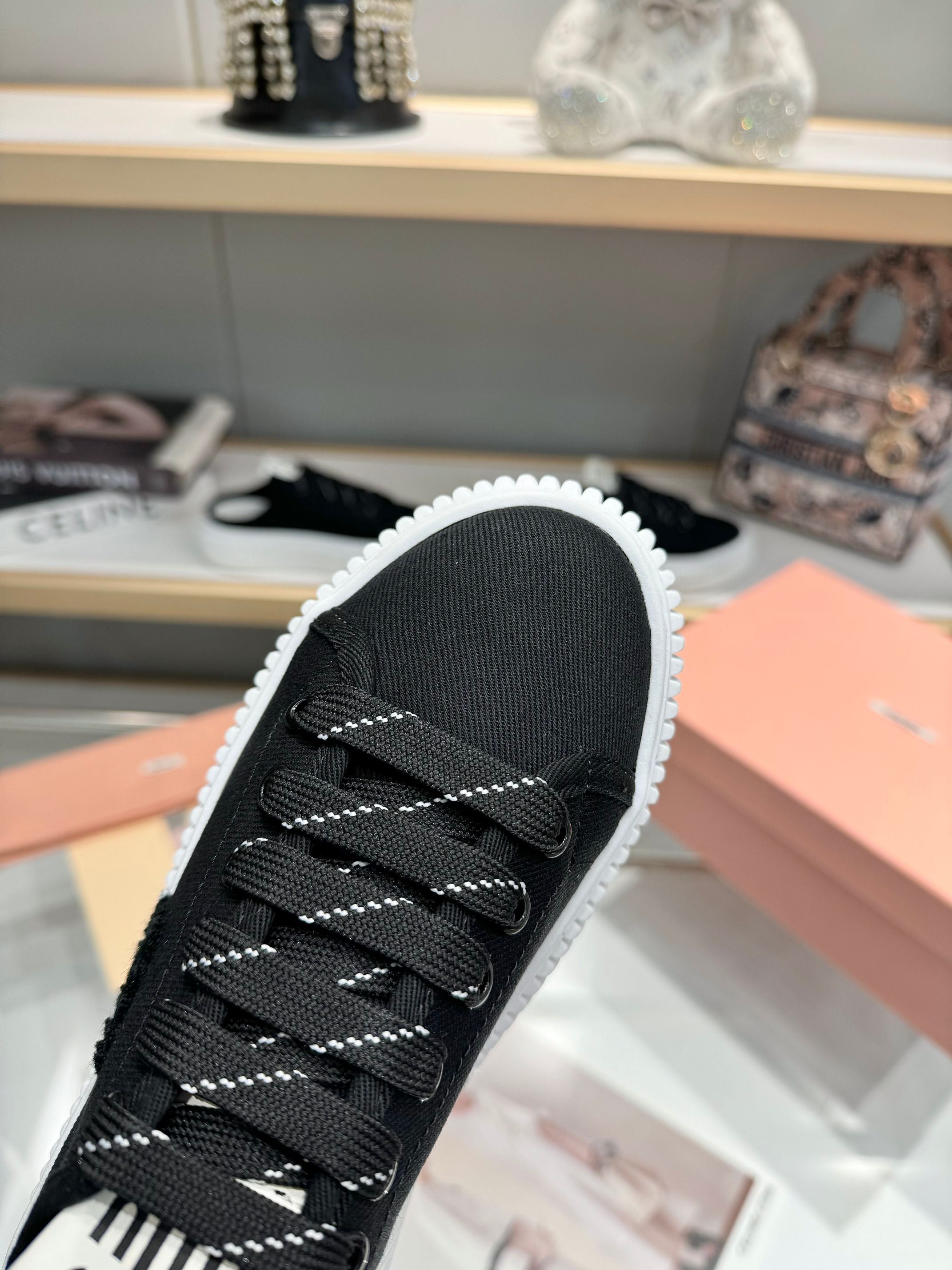 Miu logo-patch sneakers 45mm Black Canvas 456831