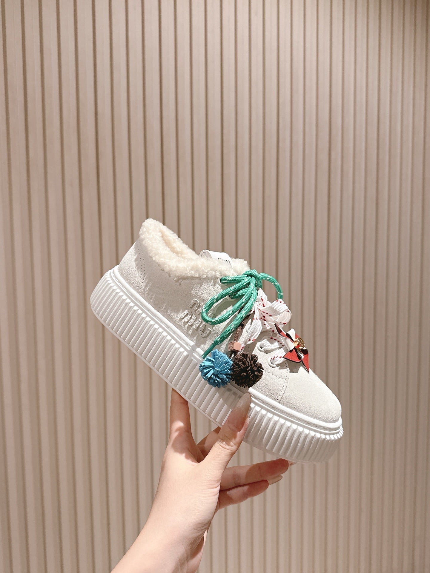 MIU MIU platform sneakers white suede wool 461862