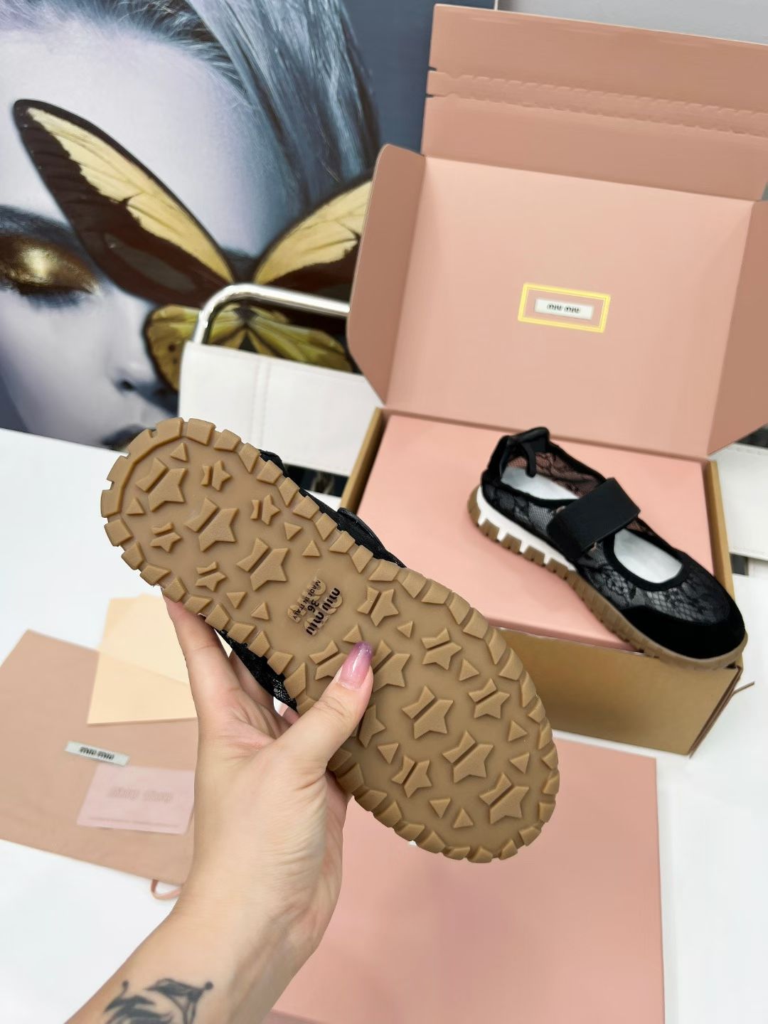 Miu Tyre Ballerina Shoes Black Suede Lace 456344