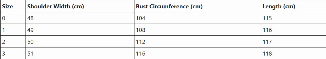 - Size : 0,1,2,3