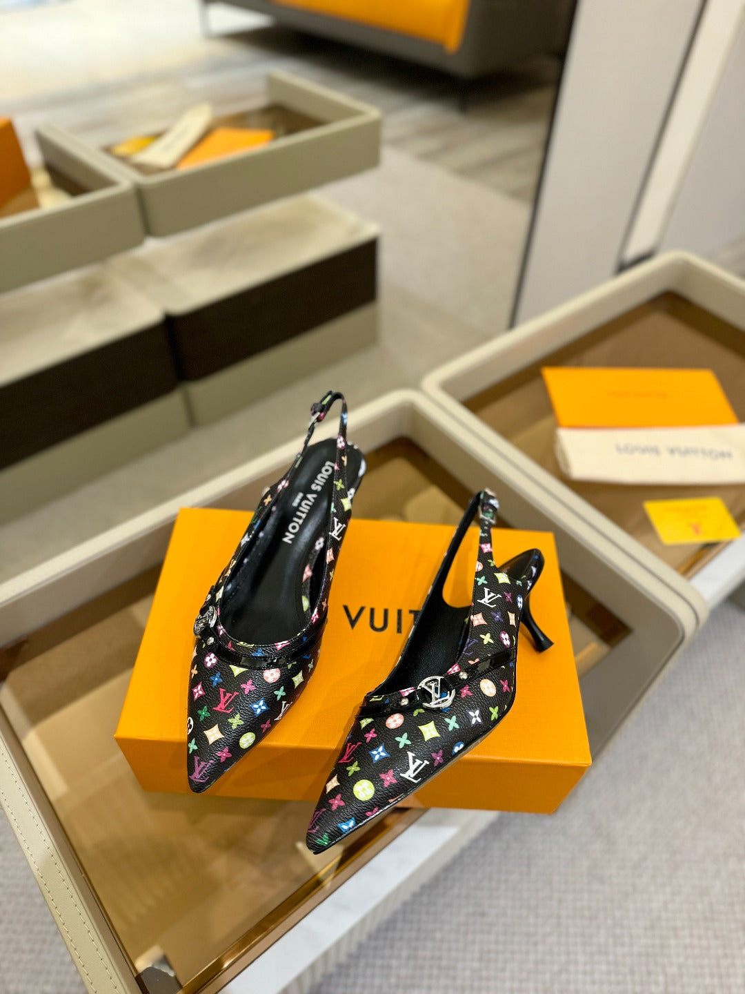 6AM Slingback Pump 4cm Black Monogram Canvas and Patent Leather 241227