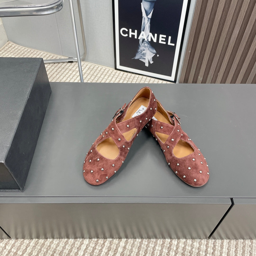 Alaia 2025 Criss Cross With Stud Ballet Flats Brown Suede 293213