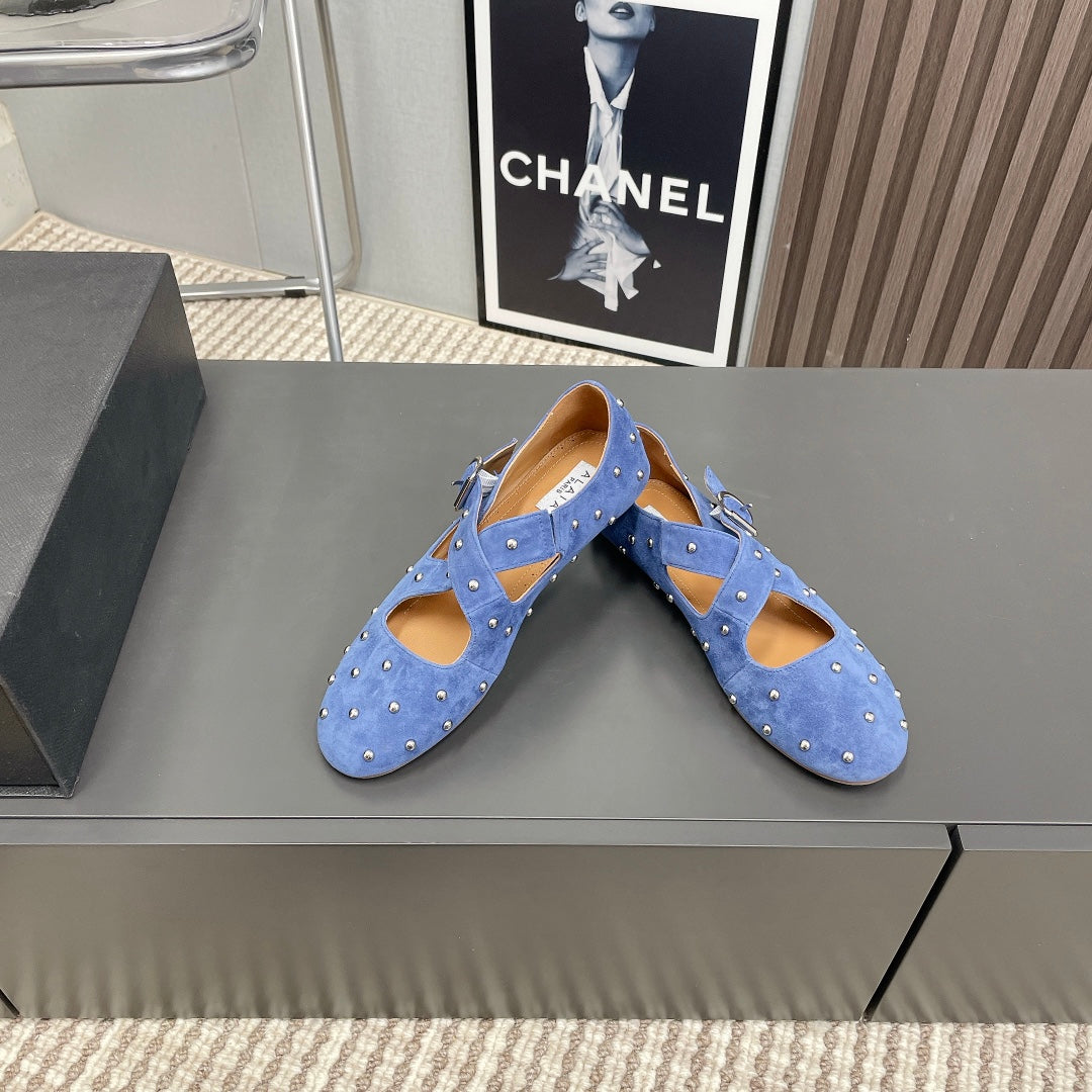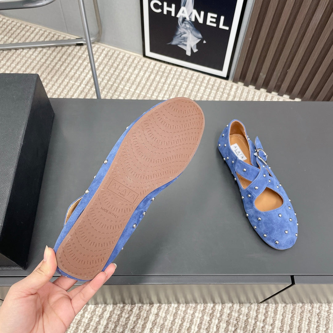 Alaia 2025 Criss Cross With Stud Ballet Flats Royal Blue Suede 293211