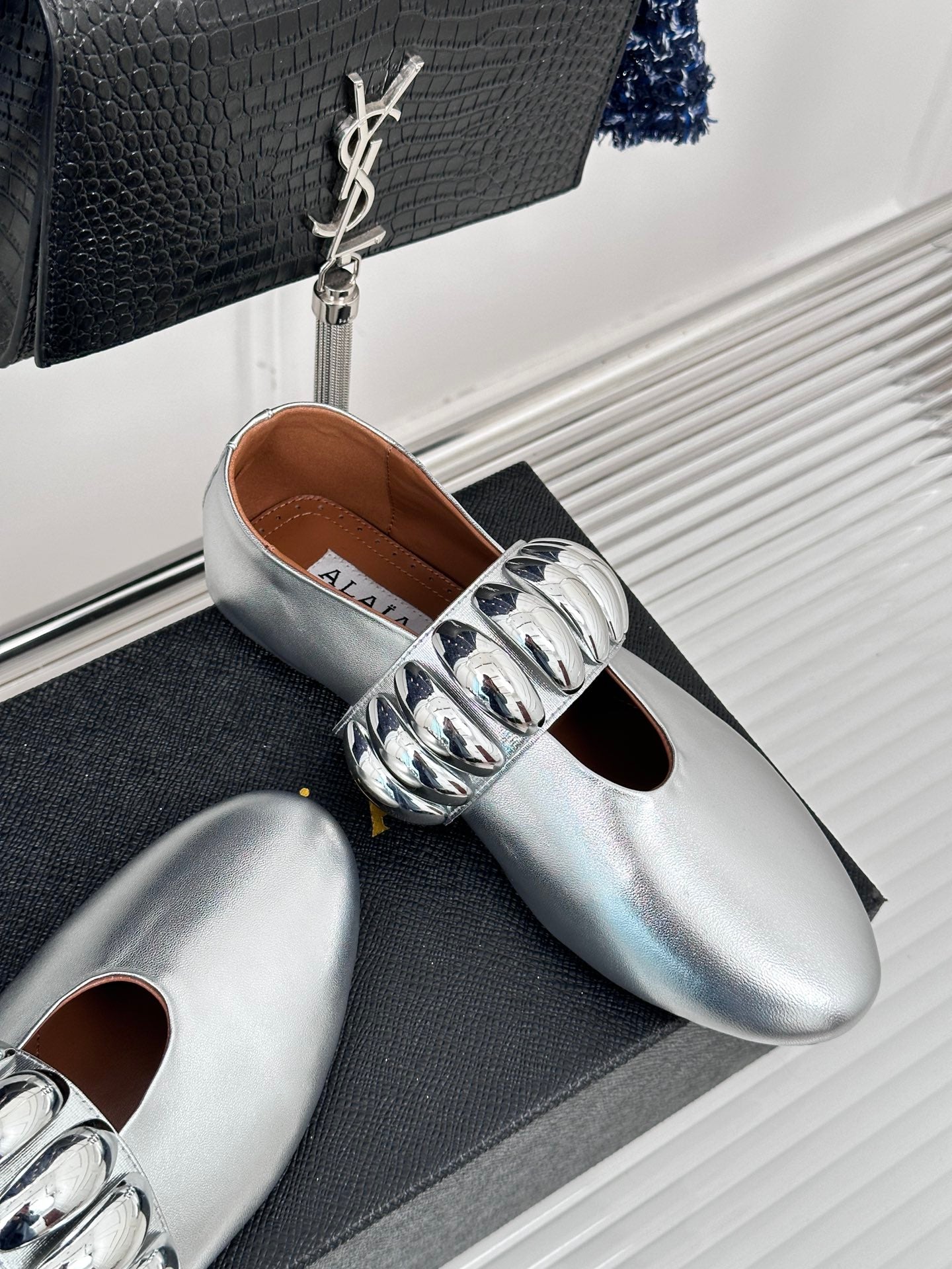 Alaia 25 Mary Jane Jewel Ballet Flats Silver Calfskin 293243