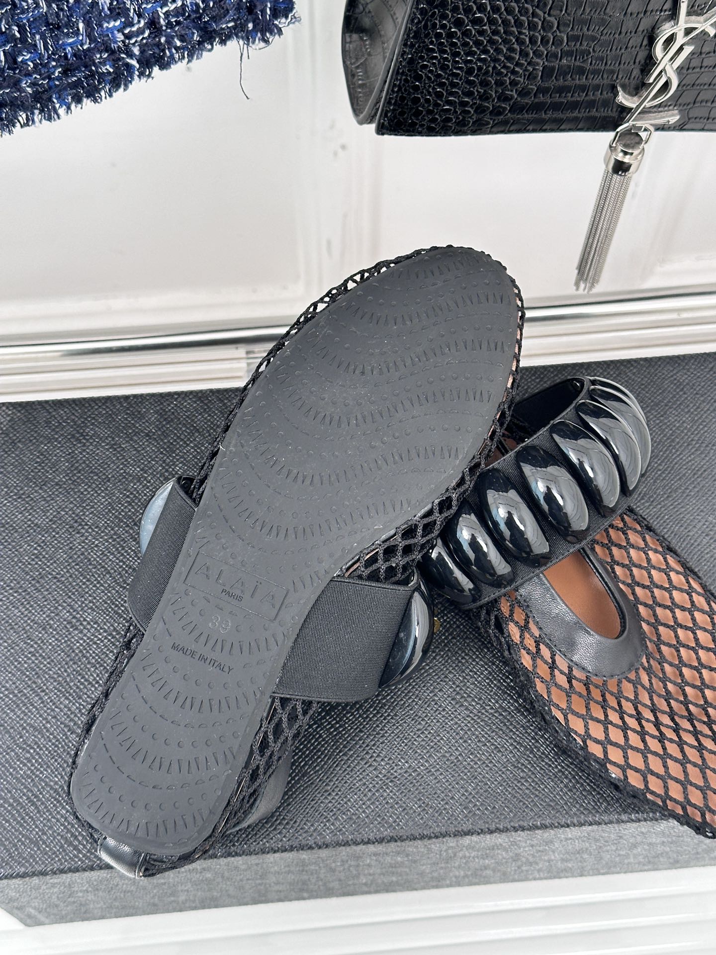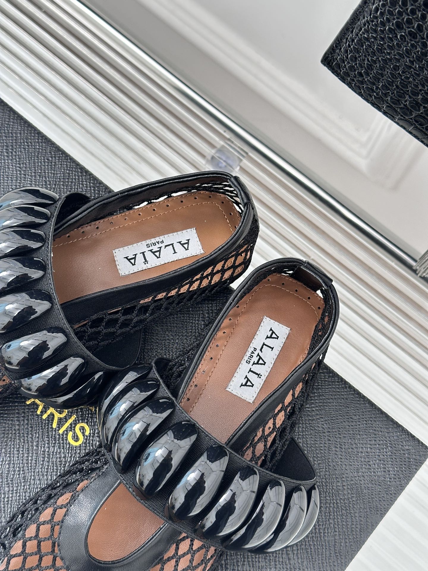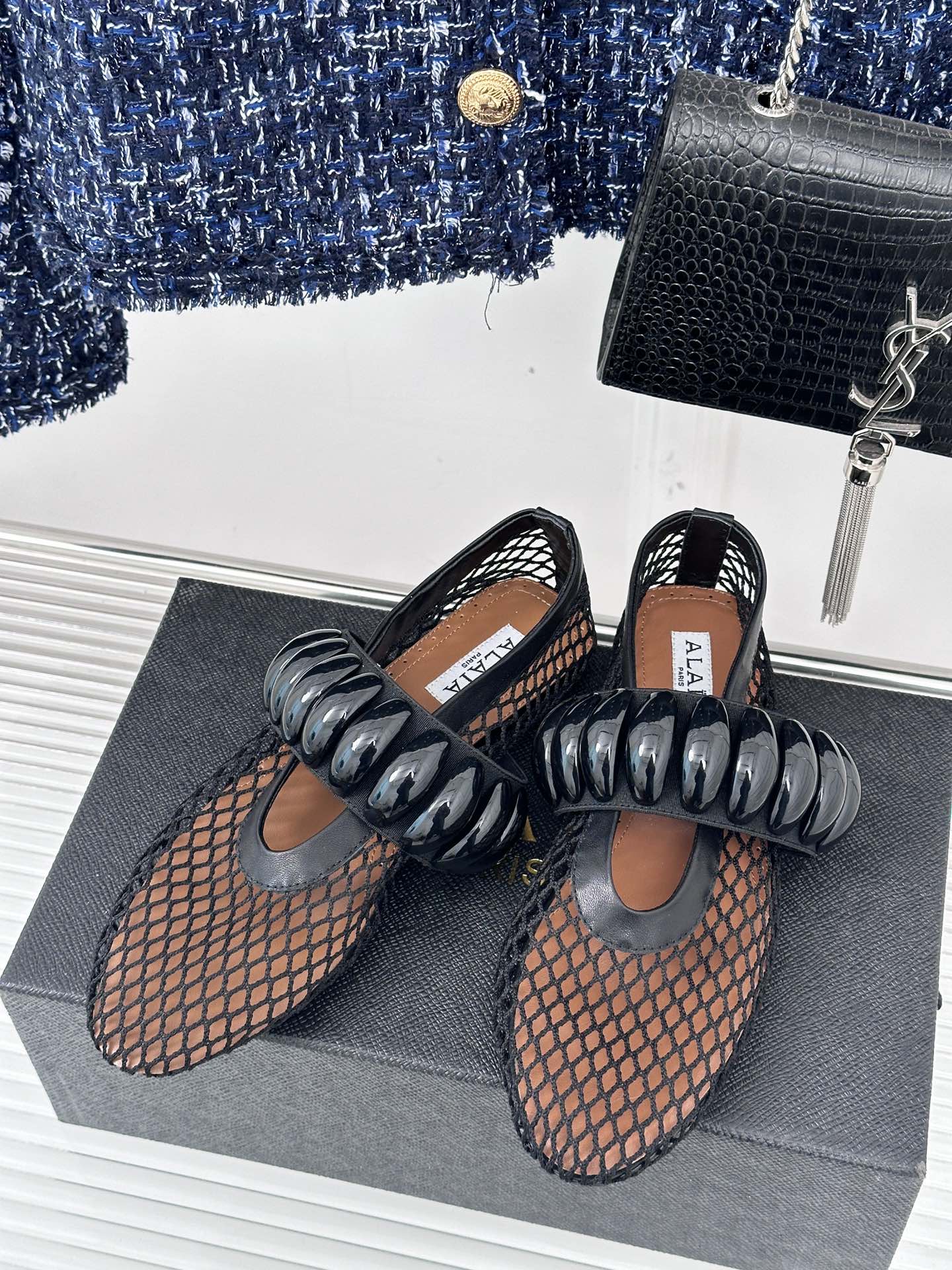 Alaia 25 Mary Jane Mesh Ballet Flats Black Calfskin 293251