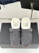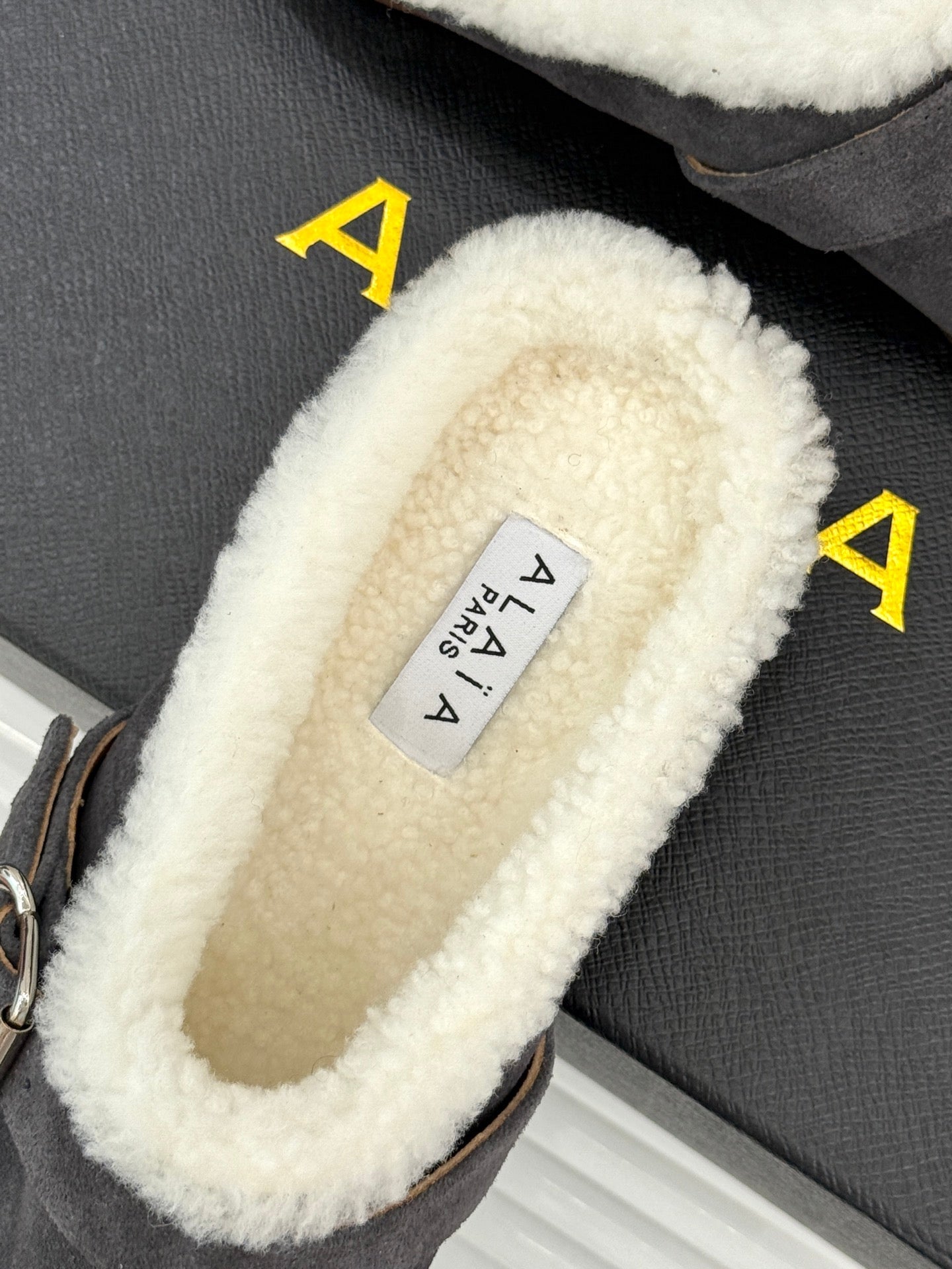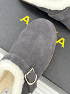 Alaia 25WF slippers belt buckle charcoal grey suede wool 472230
