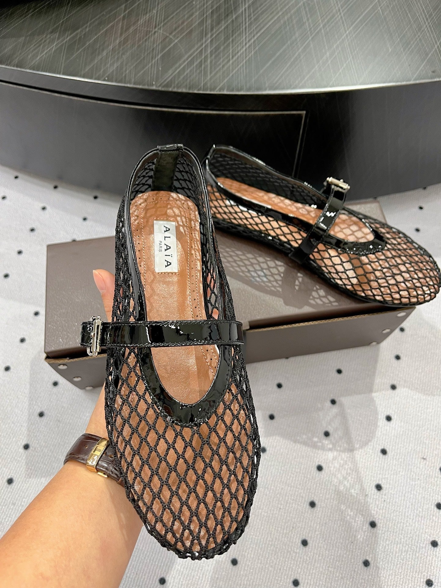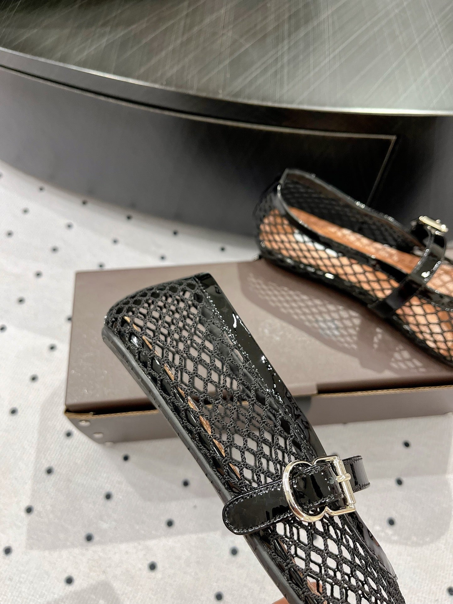 alaia ballet flat fishnet black lambskin