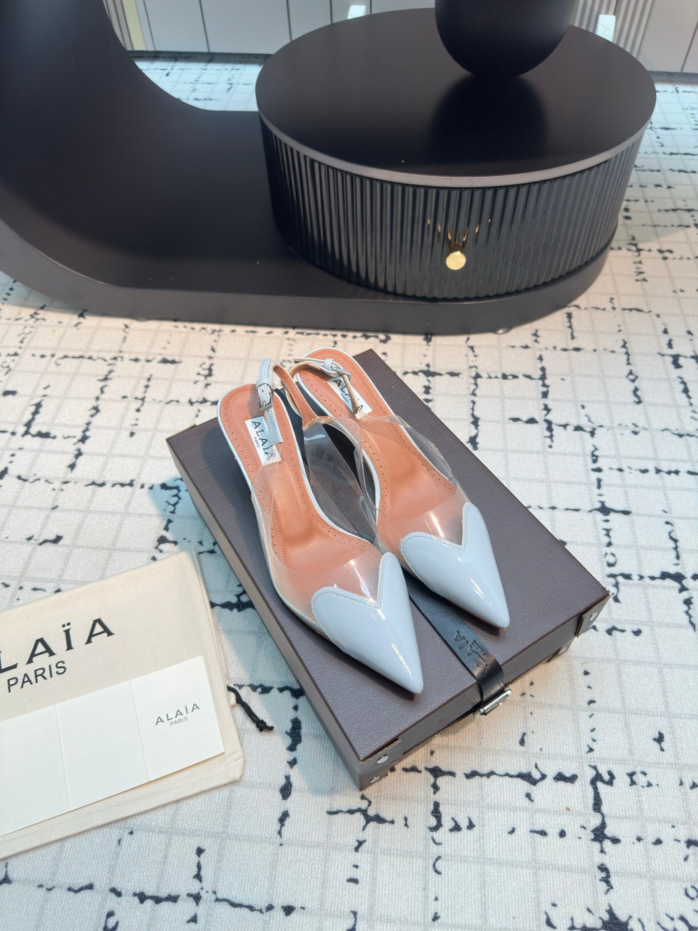 Alaia Heart 50mm Heels Slingbacks Blue Sheepskin 810208