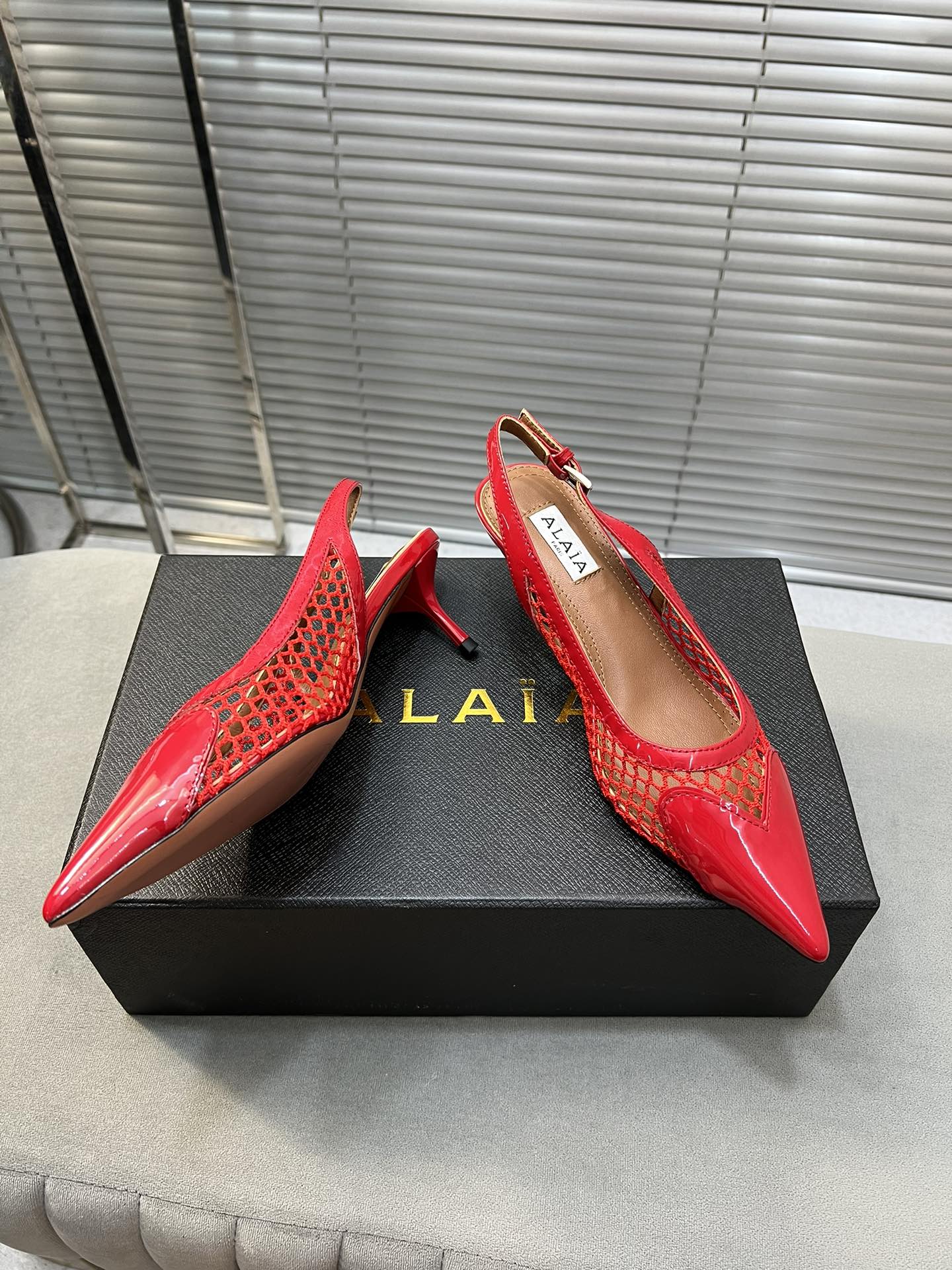 alaia high love slingback 55 fishnet red lambskin
