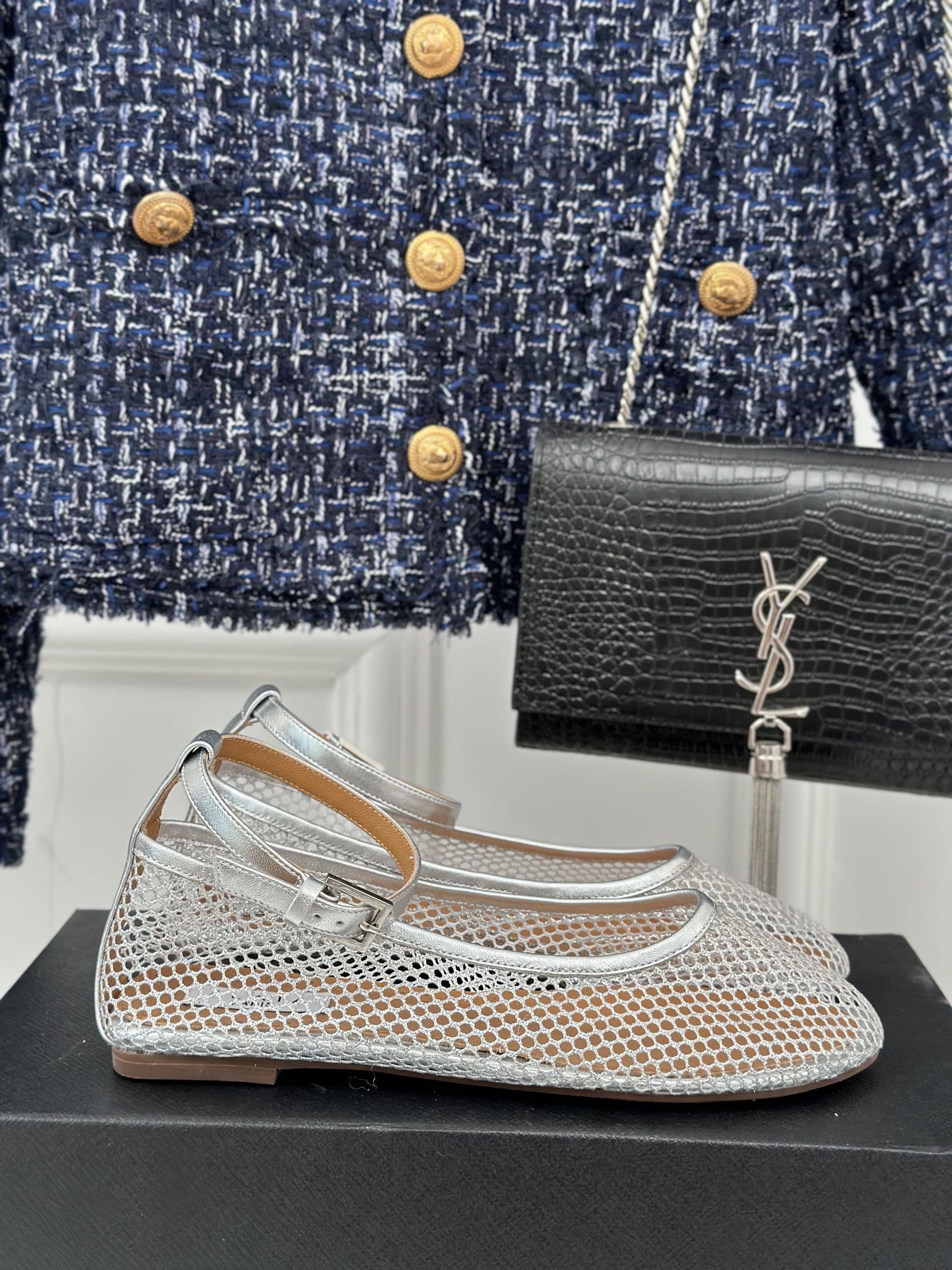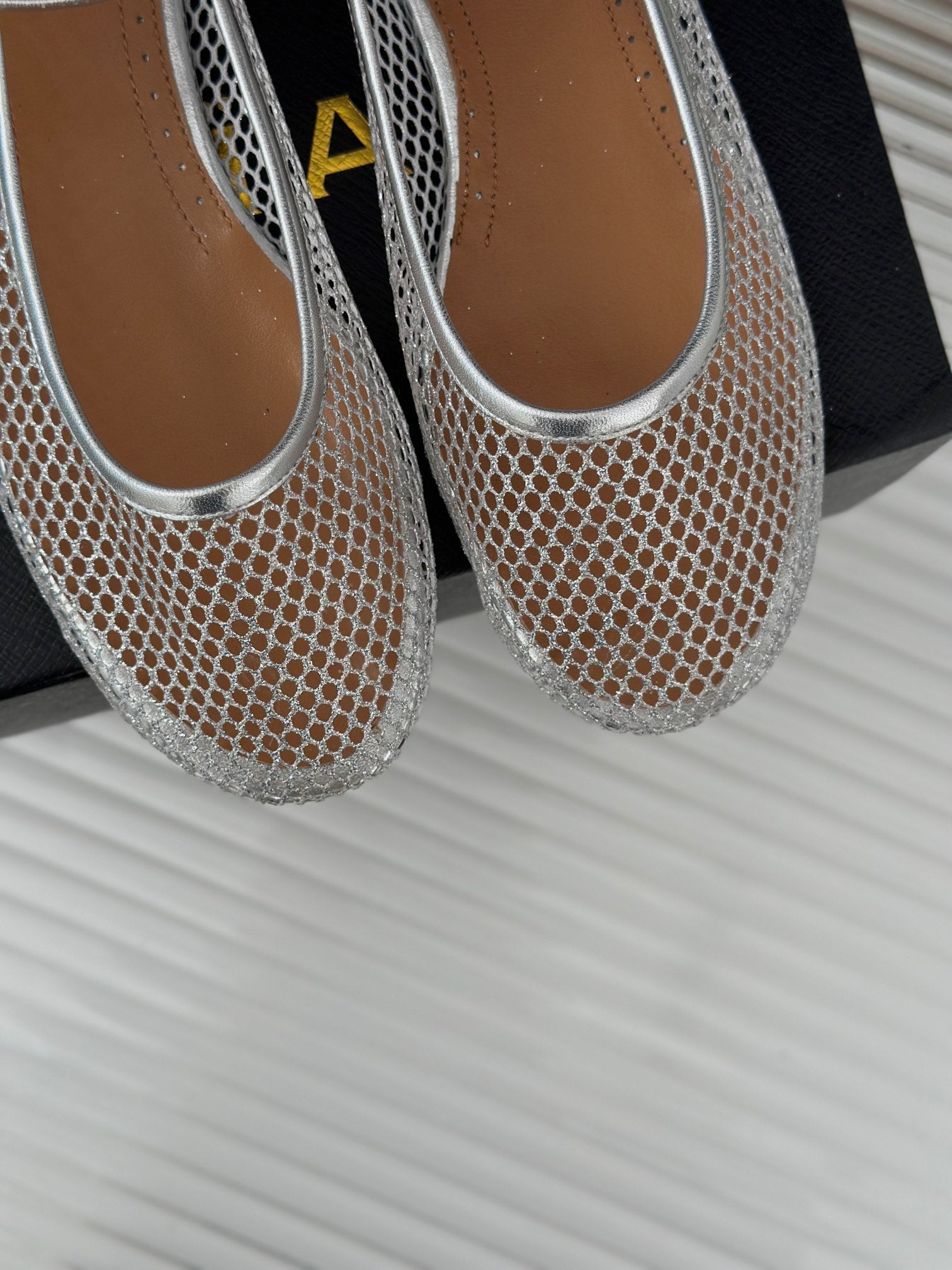 Alaia Mary Jane Ballet Flat Silver Lambskin 293236