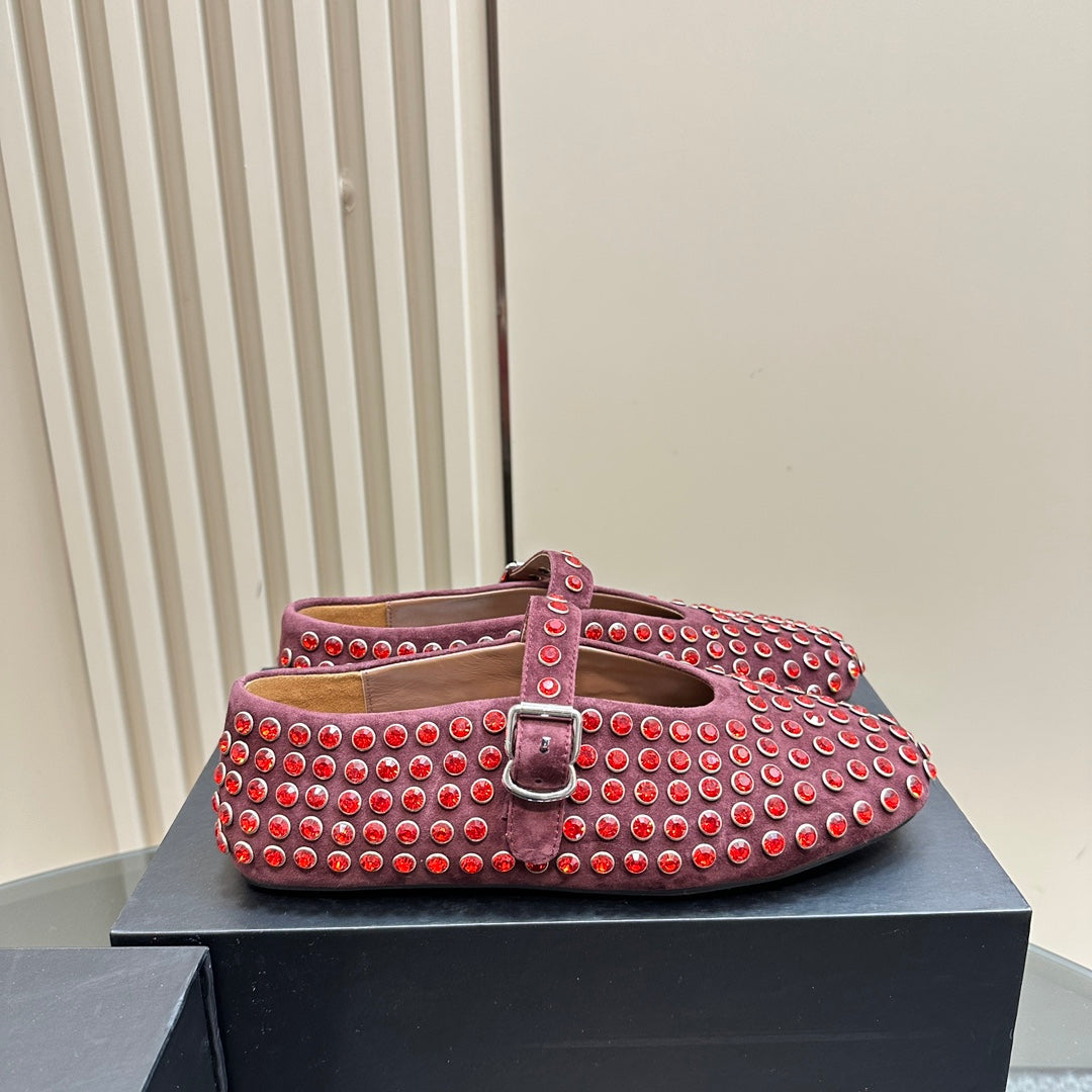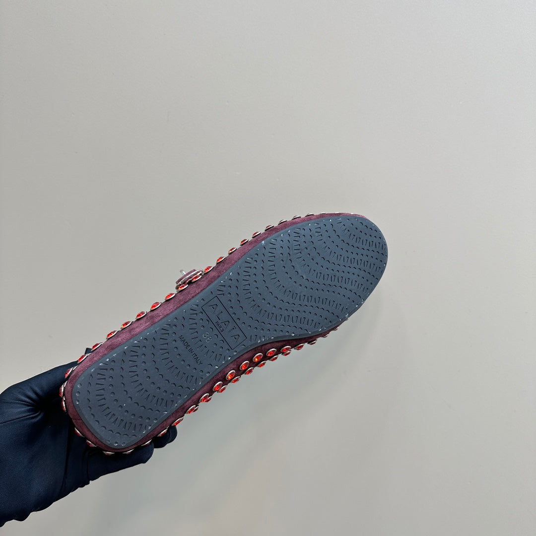 Alaia Strass Suede Ballet Flats In Red Purple 999328