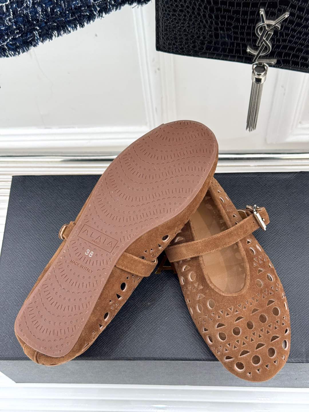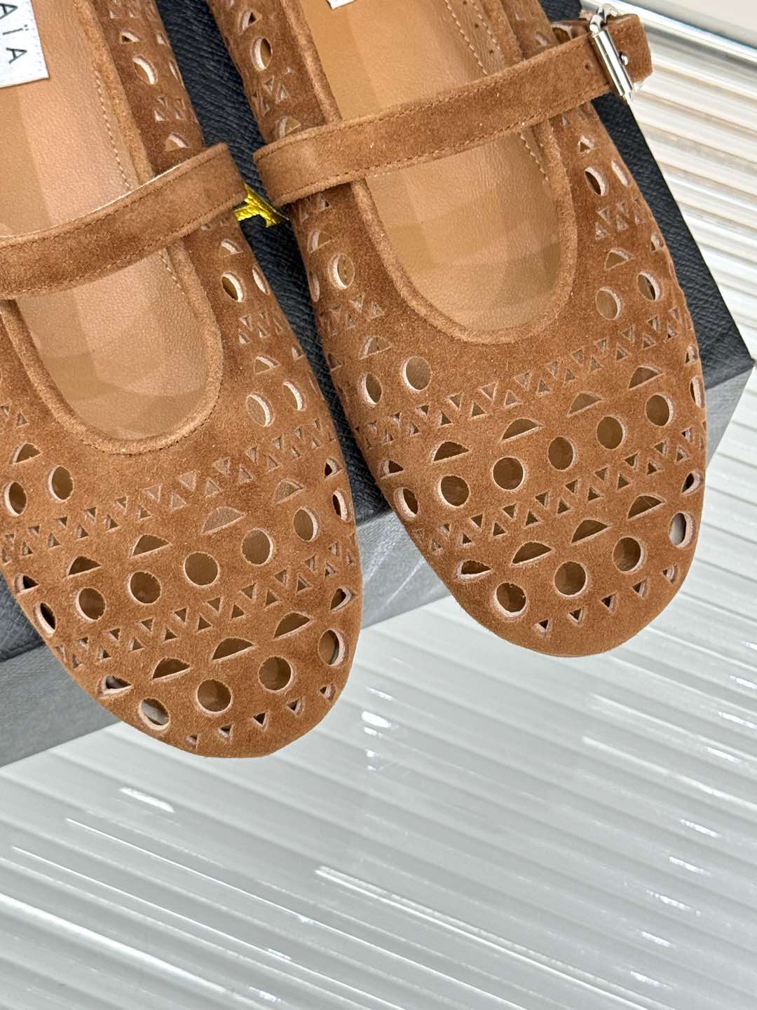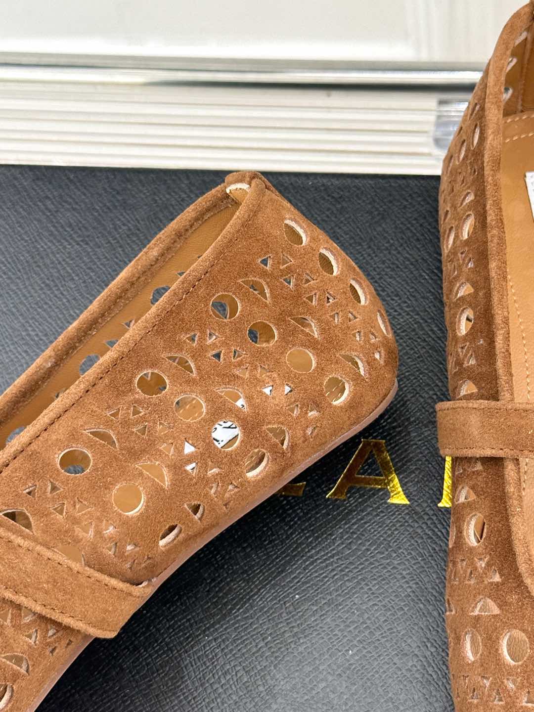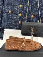 Alaia Women's Ballet Flat Brown Beige Suede 293222
