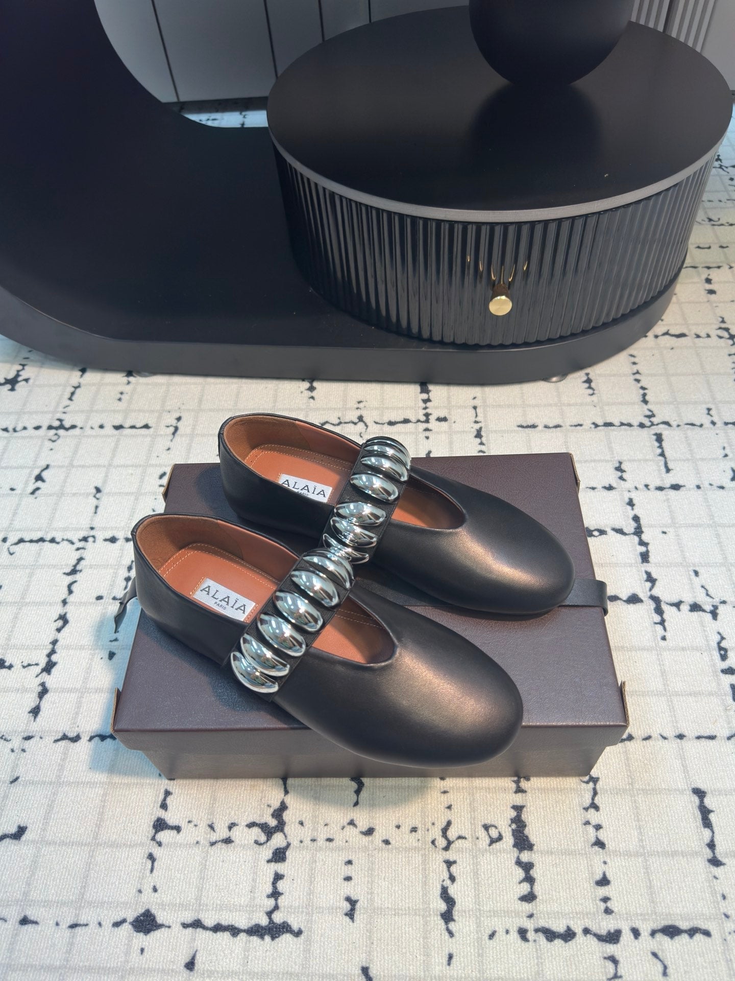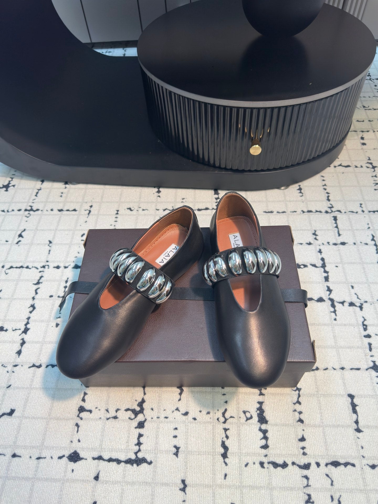 Alaila Ballet Flats In Black Cowhide 895229