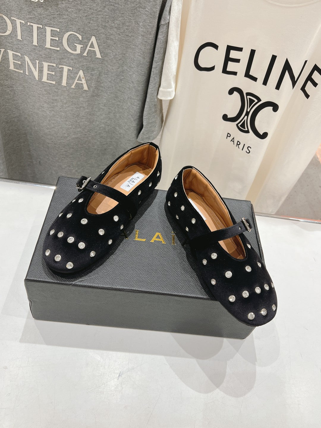Alaila Ballet Flats In Black Velvet With Rhinestones 972000