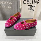Alaila Ballet Flats In Deep Pink Velvet With Rhinestones 972002
