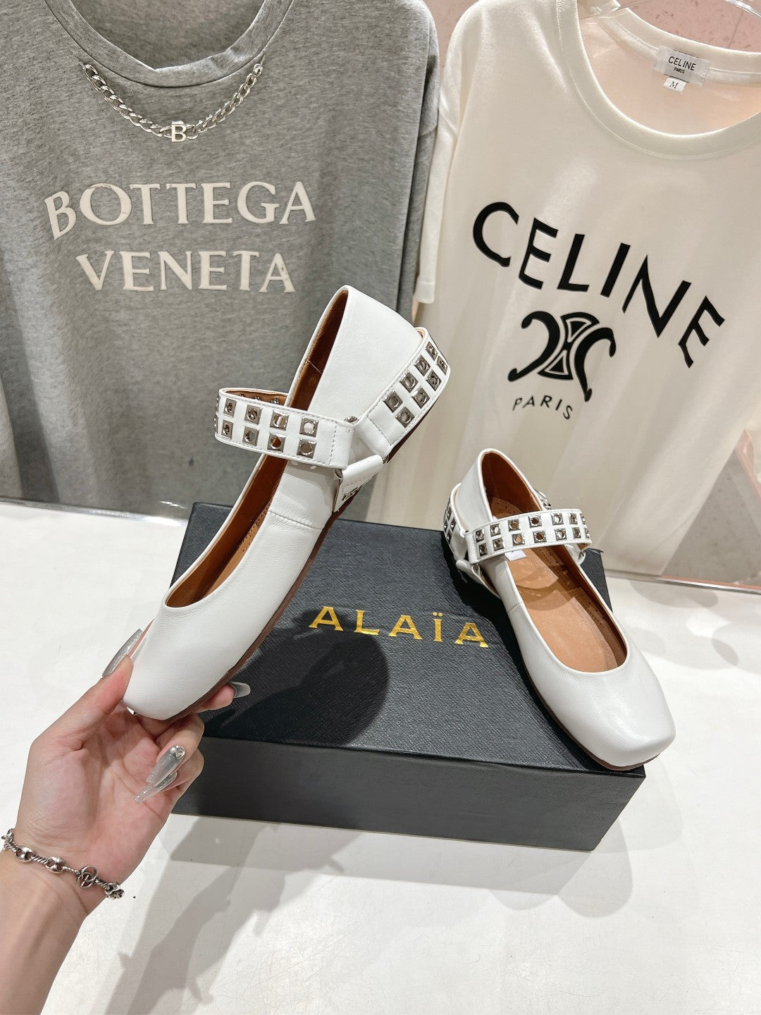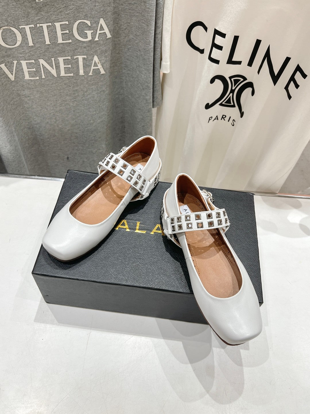 Alaila Biker Ballet Flats In White Cowhide 911438