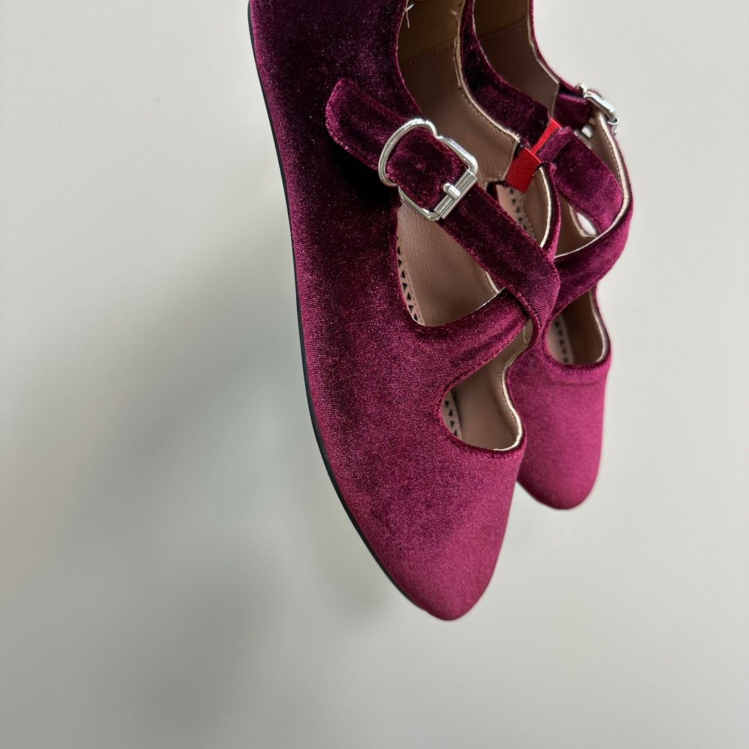 Alaila Criss Cross Ballet Flats In Red Purple Velvet 920783
