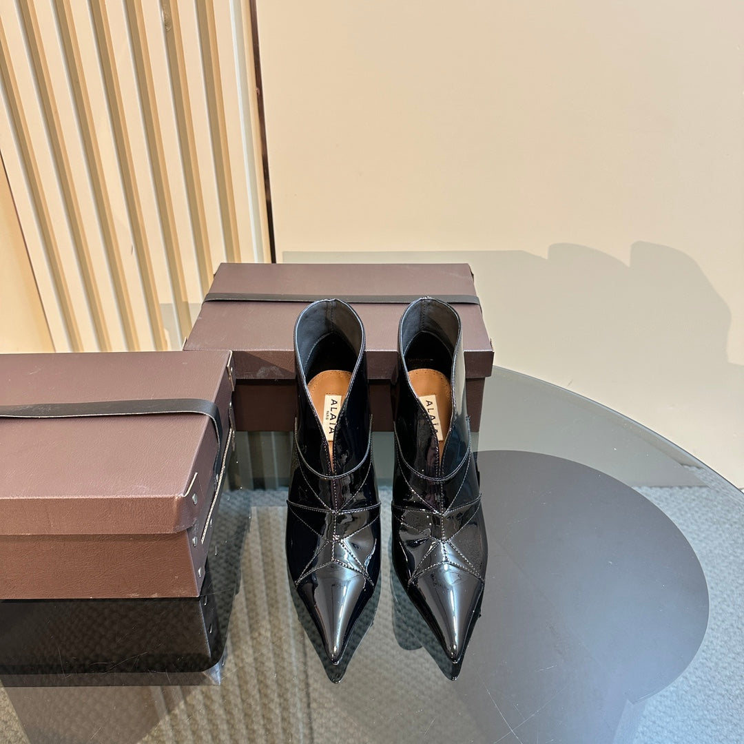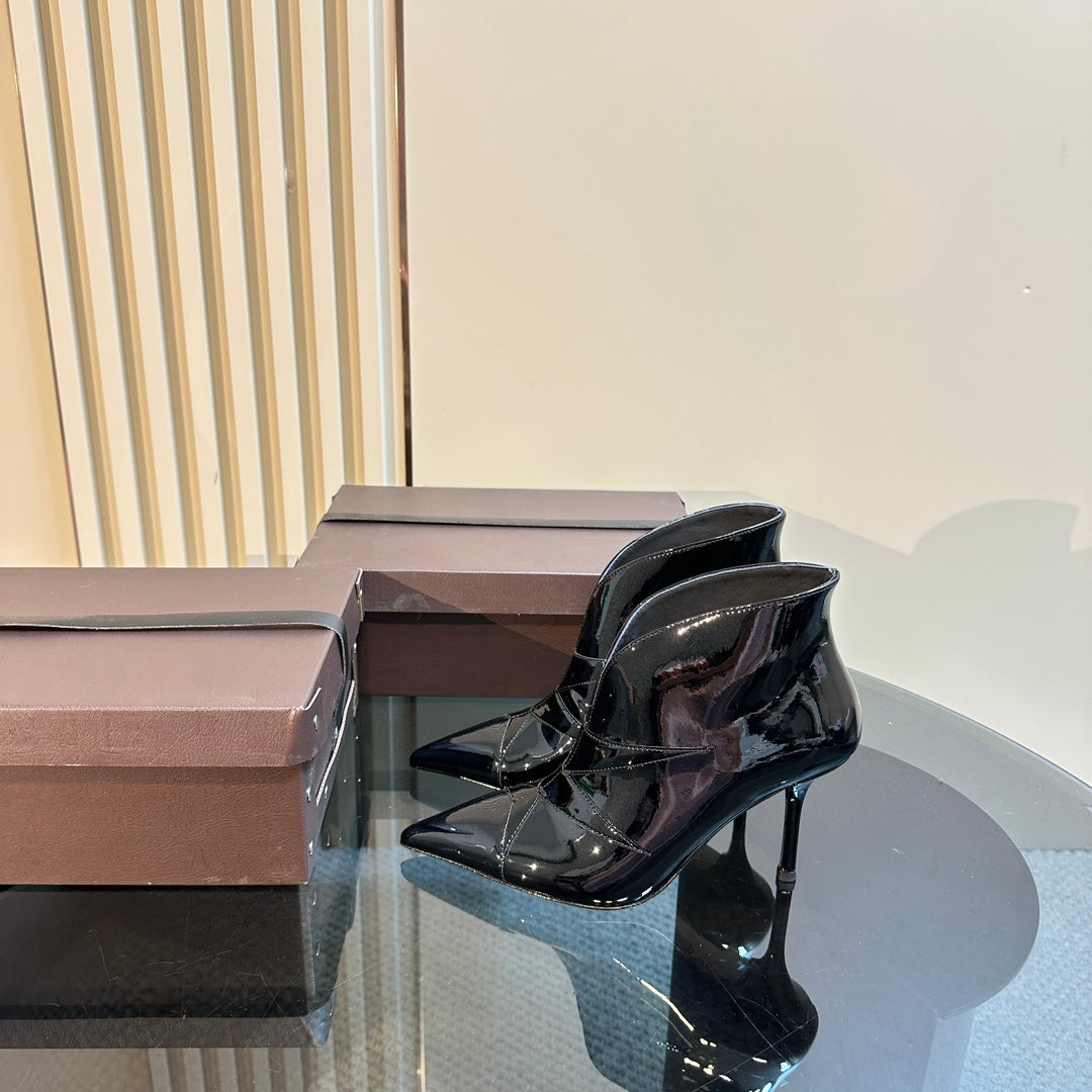 Alaila Heeled Ankle Boots 85mm In Black Glossy Cowhide 921034