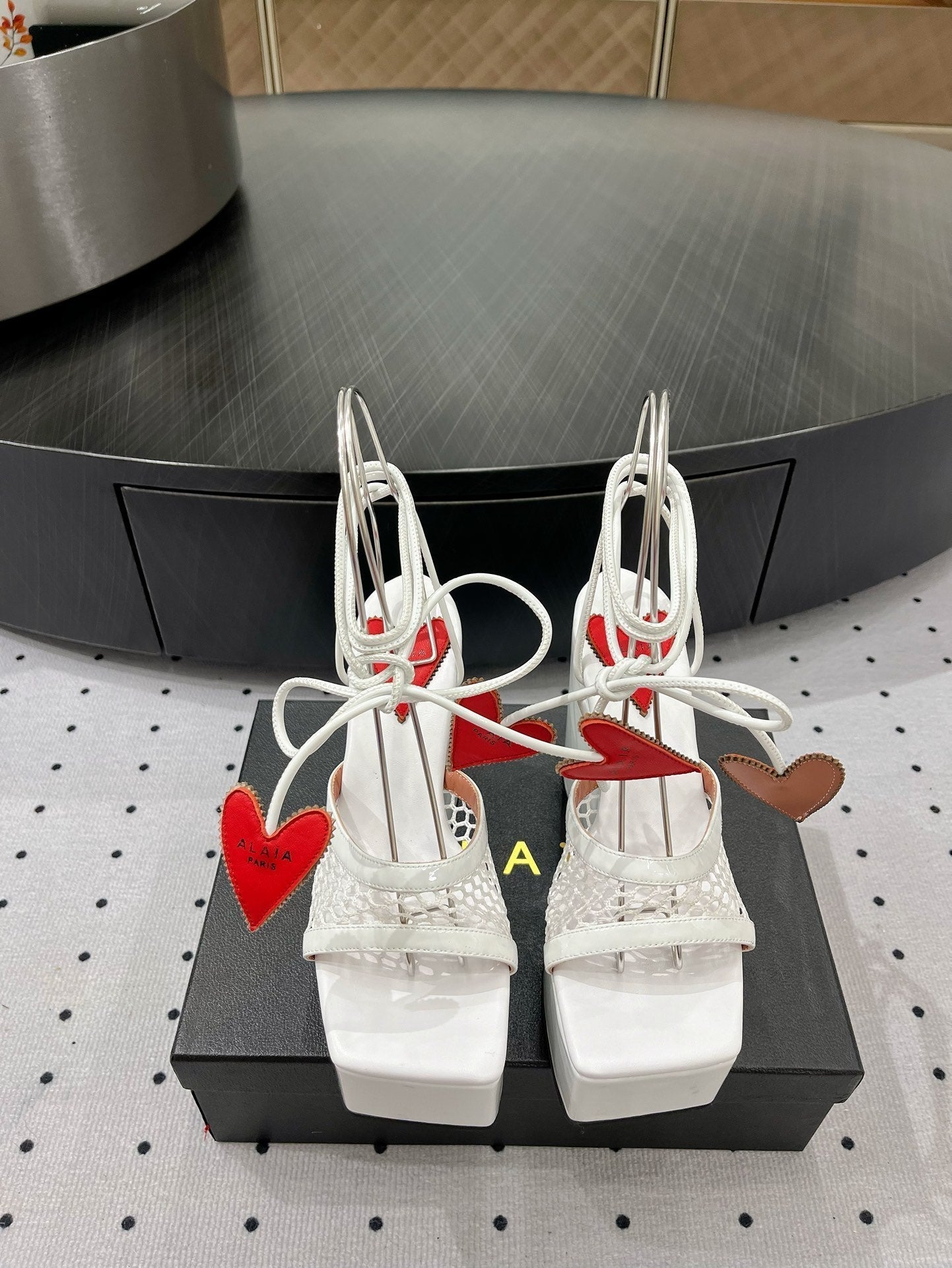 Alaila High Sandal 115mm In White Mesh Fabric 954862