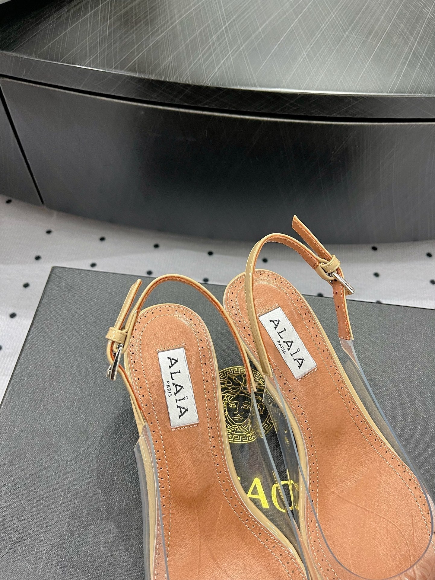 Alaila Le Cœur Slingbacks 60mm In Beige Glossy Lambskin 954829