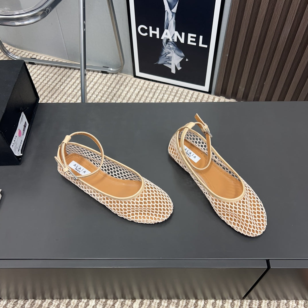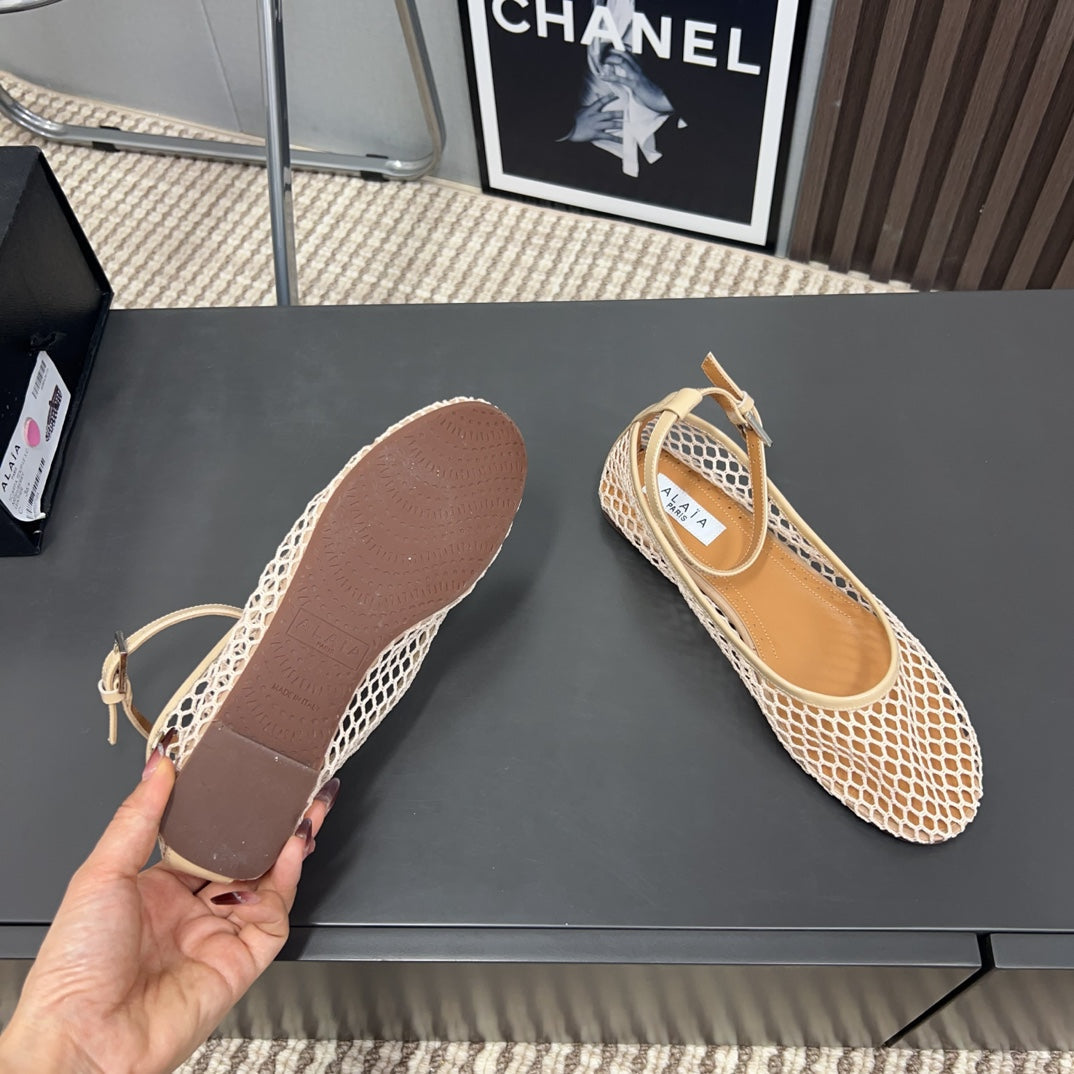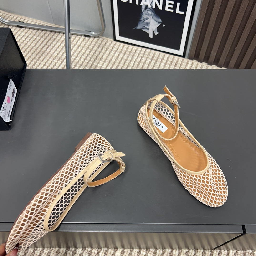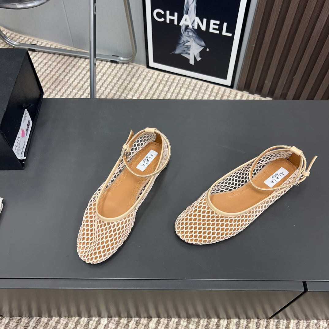 Alaila Mary Jane In Beige Mesh Fabric 996071