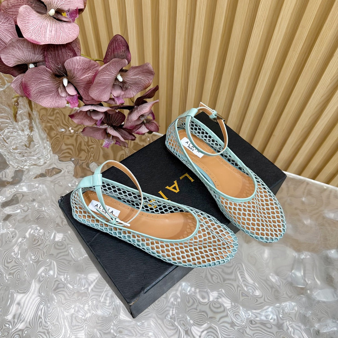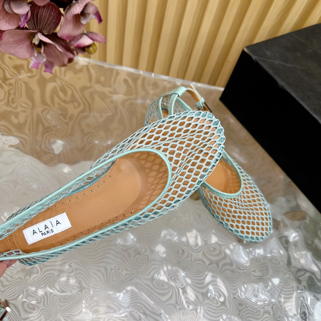Alaila Mary Jane In Jade Green Mesh Fabric 103016