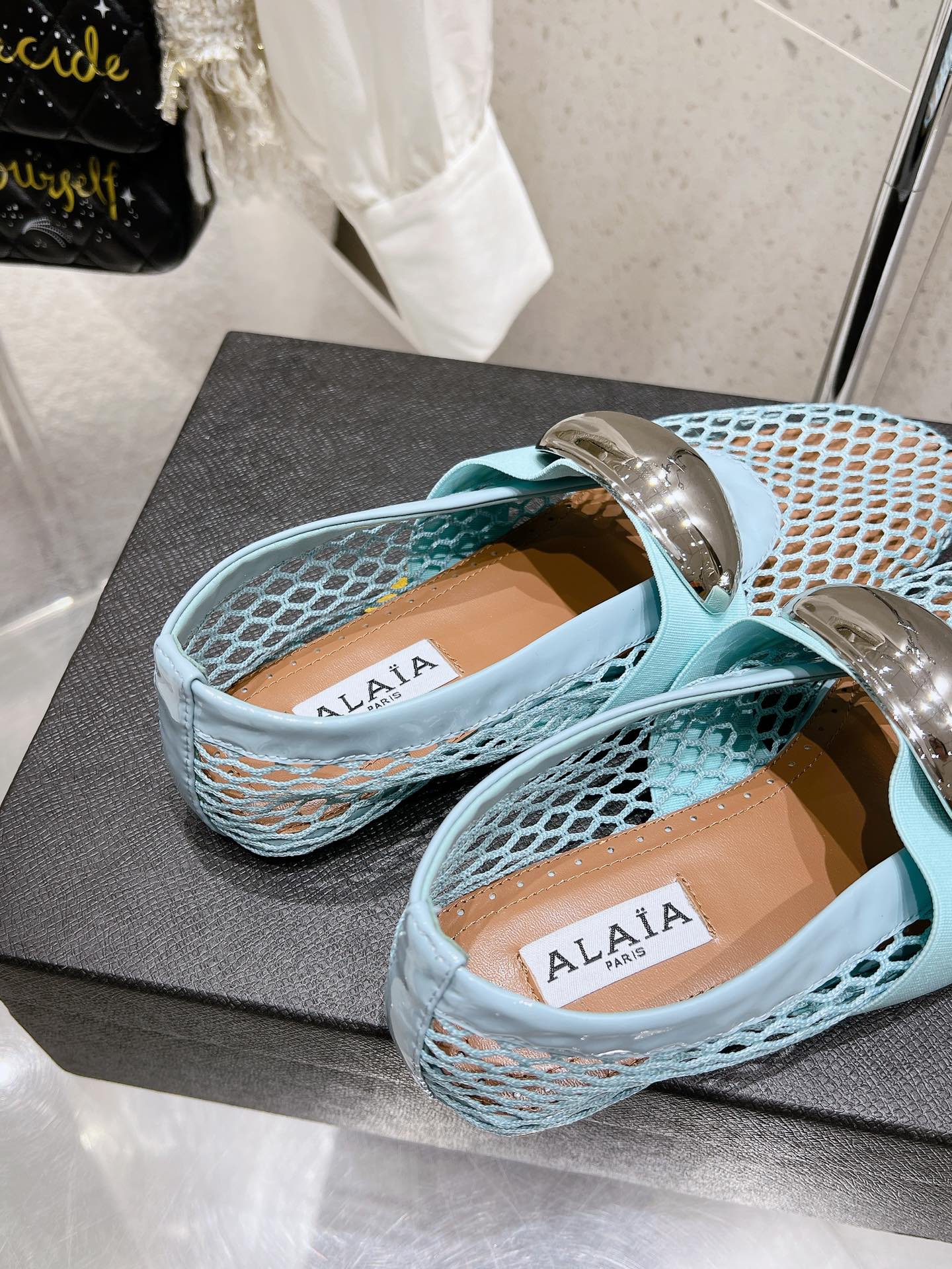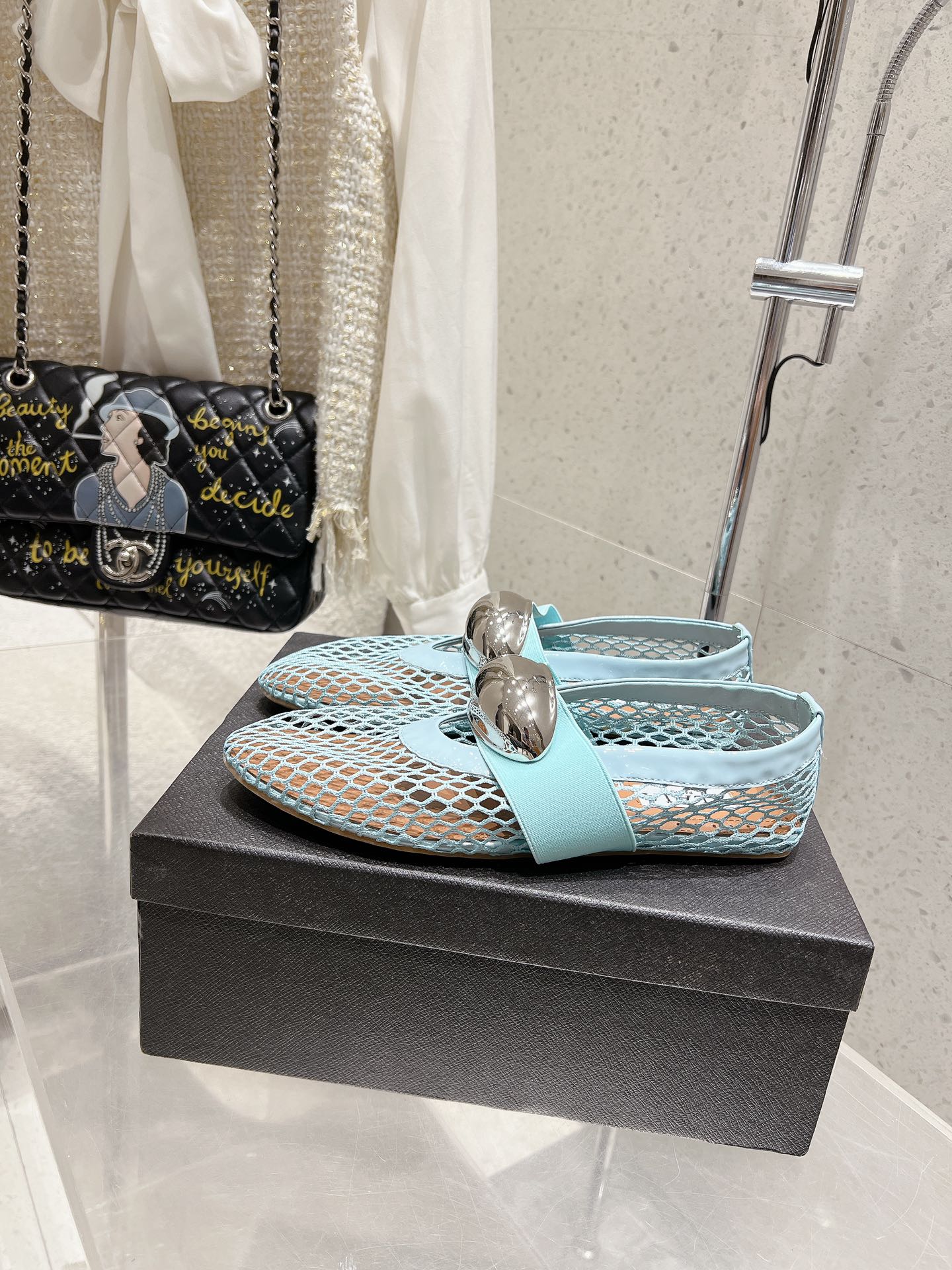 ballet flat jewel fishnet sky blue lambskin