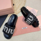 Black Sheepskin Diamond Slippers