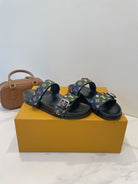 Bom Dia Flat Comfort Mule Black and Multicolored Monogram Canvas 241333