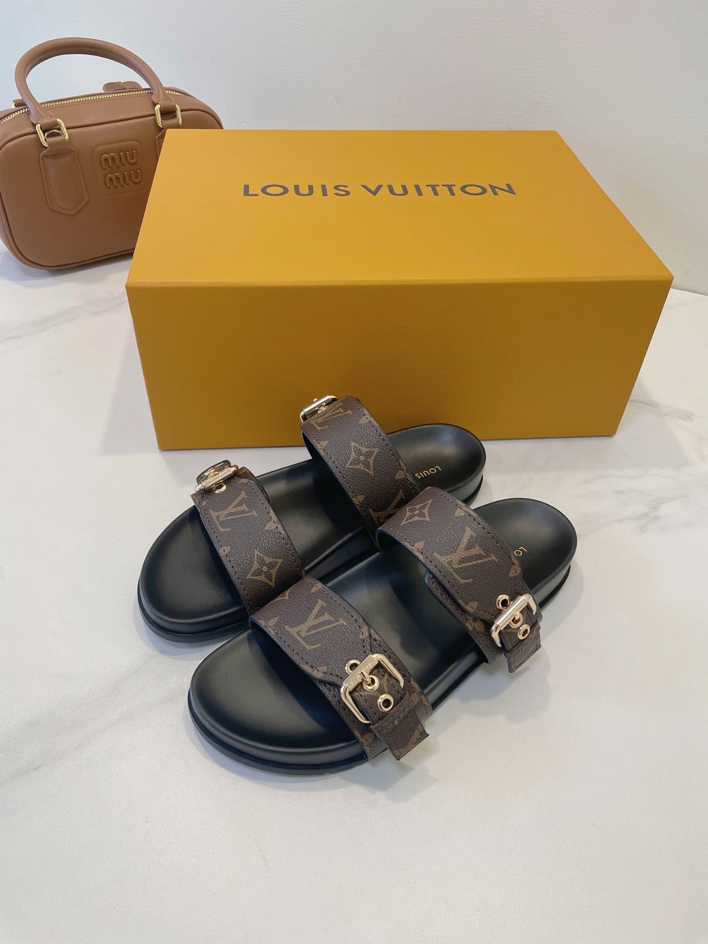 Bom Dia Flat Comfort Mule Brown Monogram canvas 241332