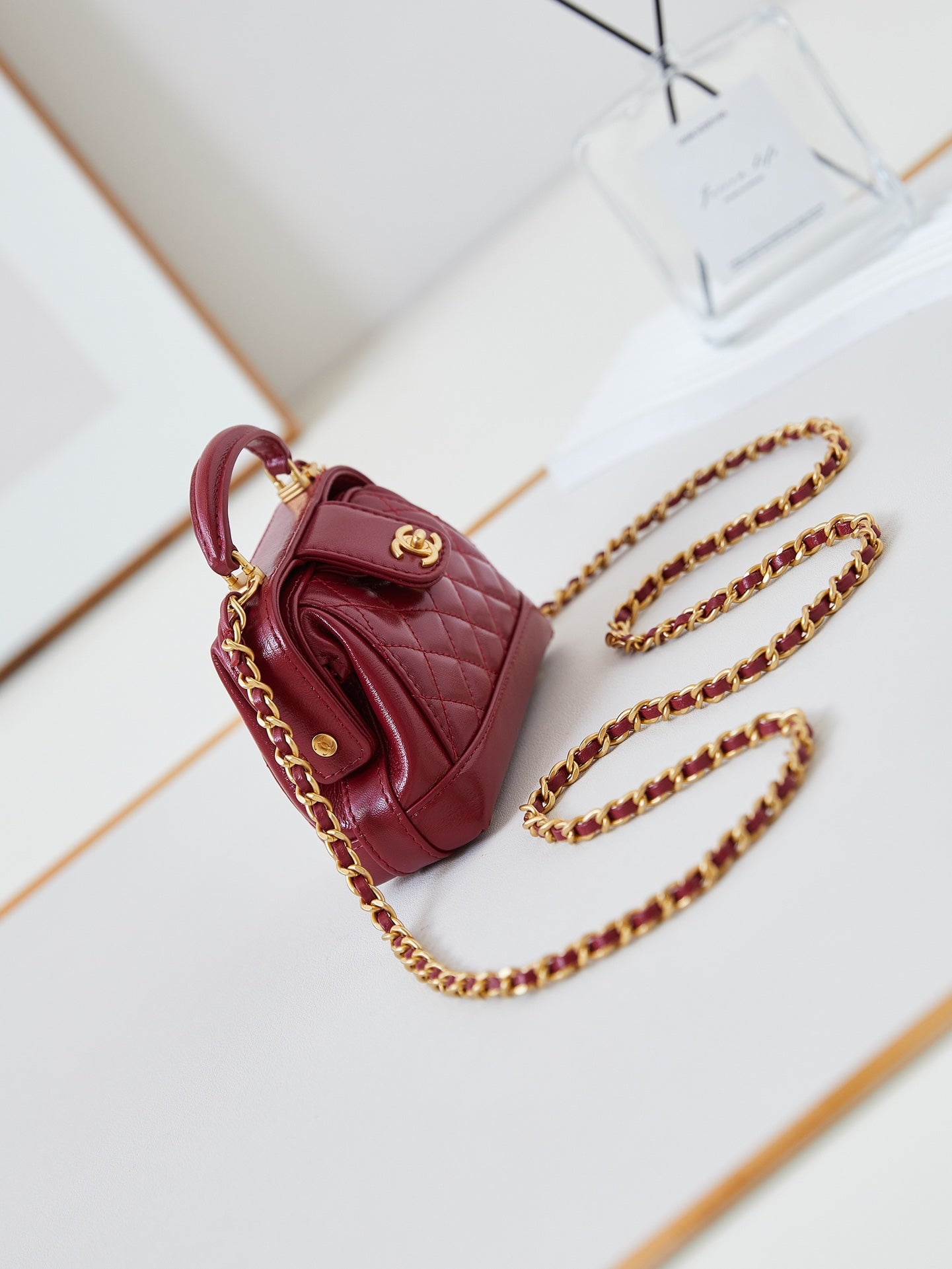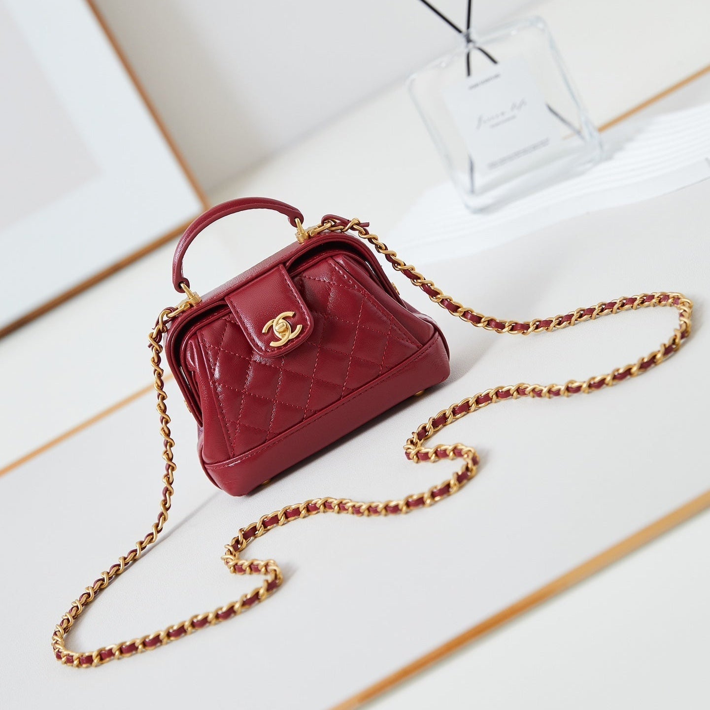 CC 24A Mini Top Handle 13cm Red Wax Leather Gold Hardware 238461
