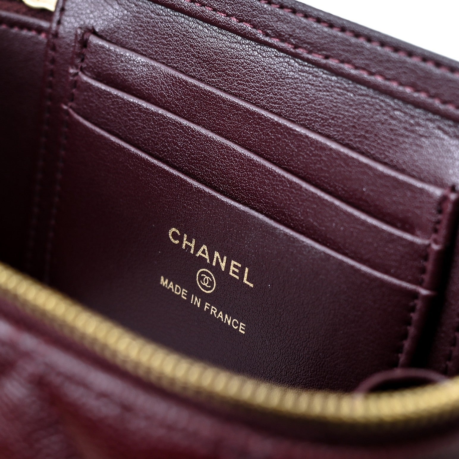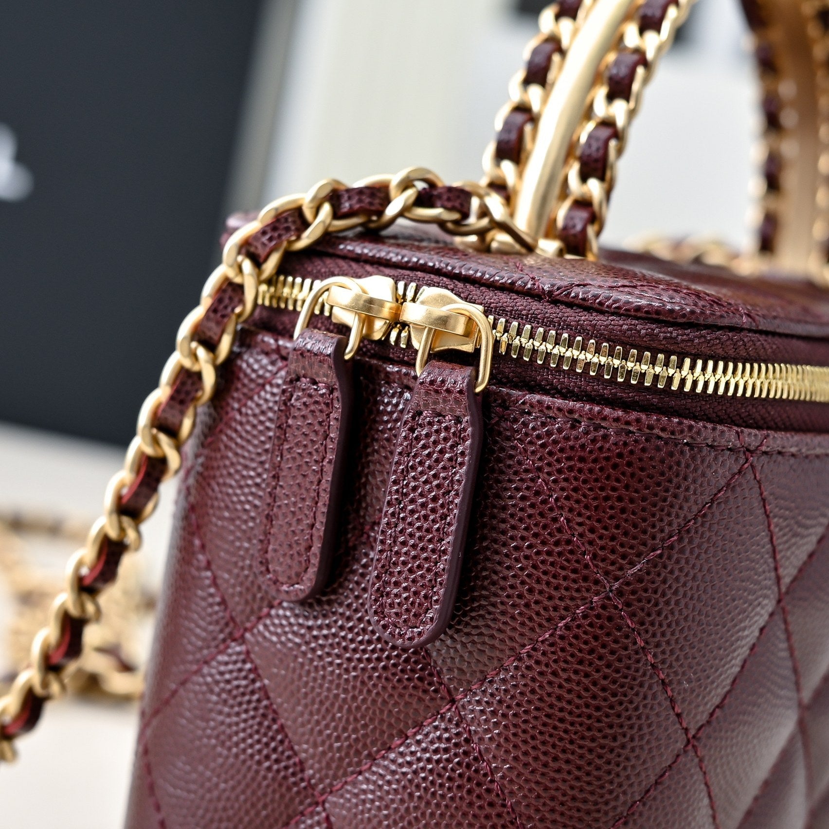 CC 24A Vanity Top Handle 16cm Burgundy Grained Calfskin Gold Hardware